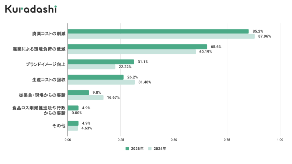 動機は「廃棄コスト削減」が最多。一方で「社会的責任」への意識も向上