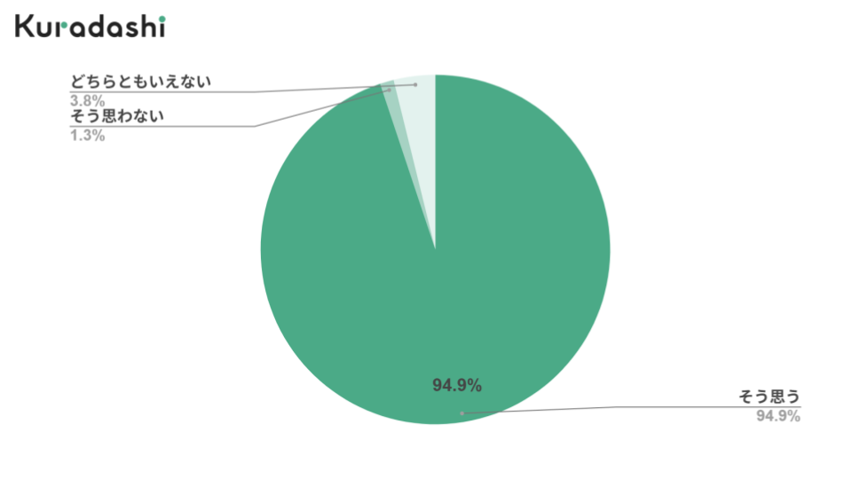 「Kuradashi」のようなフードロスの再流通を担うサービスが「セーフティーネットになり得る」と回答した事業者は94.9%に達し、前回調査からさらに3.9ポイント増加しました。