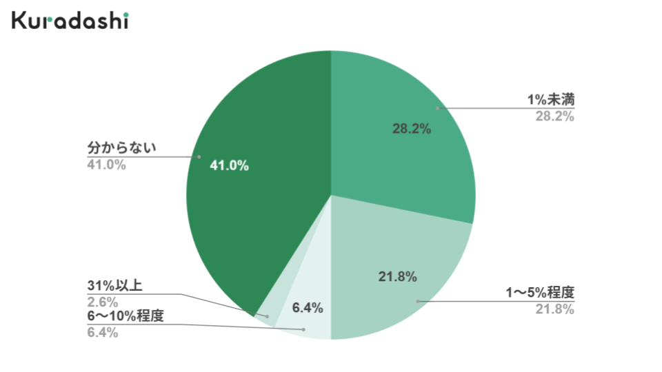「分からない」という回答を除くと「1%未満」の回答が最も多く28.2%でした。2024年調査点と比較すると、約7ポイント増加しており、食品事業者におけるフードロス発生率が減少傾向にあることが分かります。一方で、31%以上と回答した事業者が2.6%いる結果から、製造や流通過程におけるフードロス削減に今後も継続的に取り組む必要があると言えます。