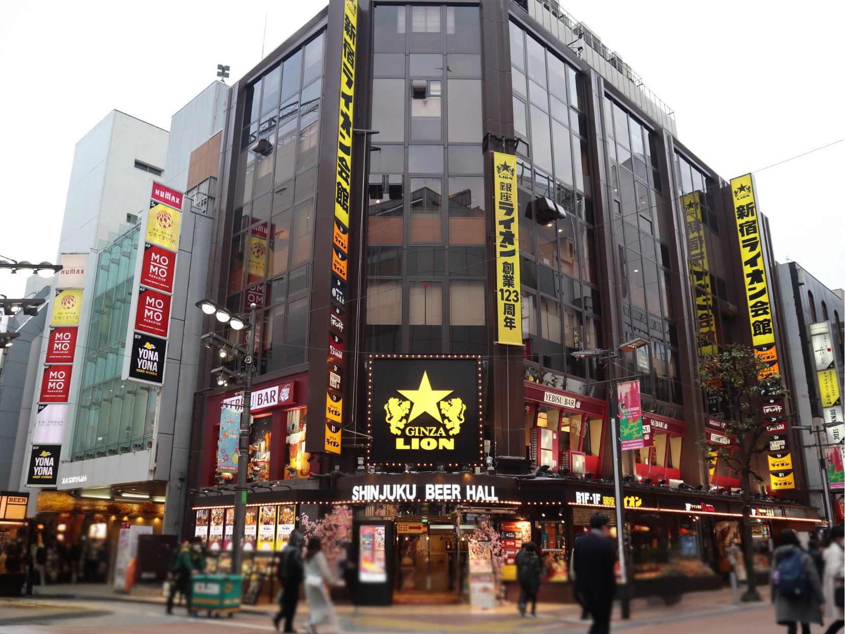 『新宿ライオン会館』は、サッポロライオンが銀座とならんでビヤホール文化の発信拠点とする、新宿駅東口側に位置する地下1階から6階の全フロアが飲食店となっているレストランビルです。1939(昭和14)年4月17日にこの地で「新宿ビヤホール」を開業して以来、各フロアの業態や内装を時代にあわせて変化させ営業を続けており、本年4月17日(金)で87周年を迎えます。