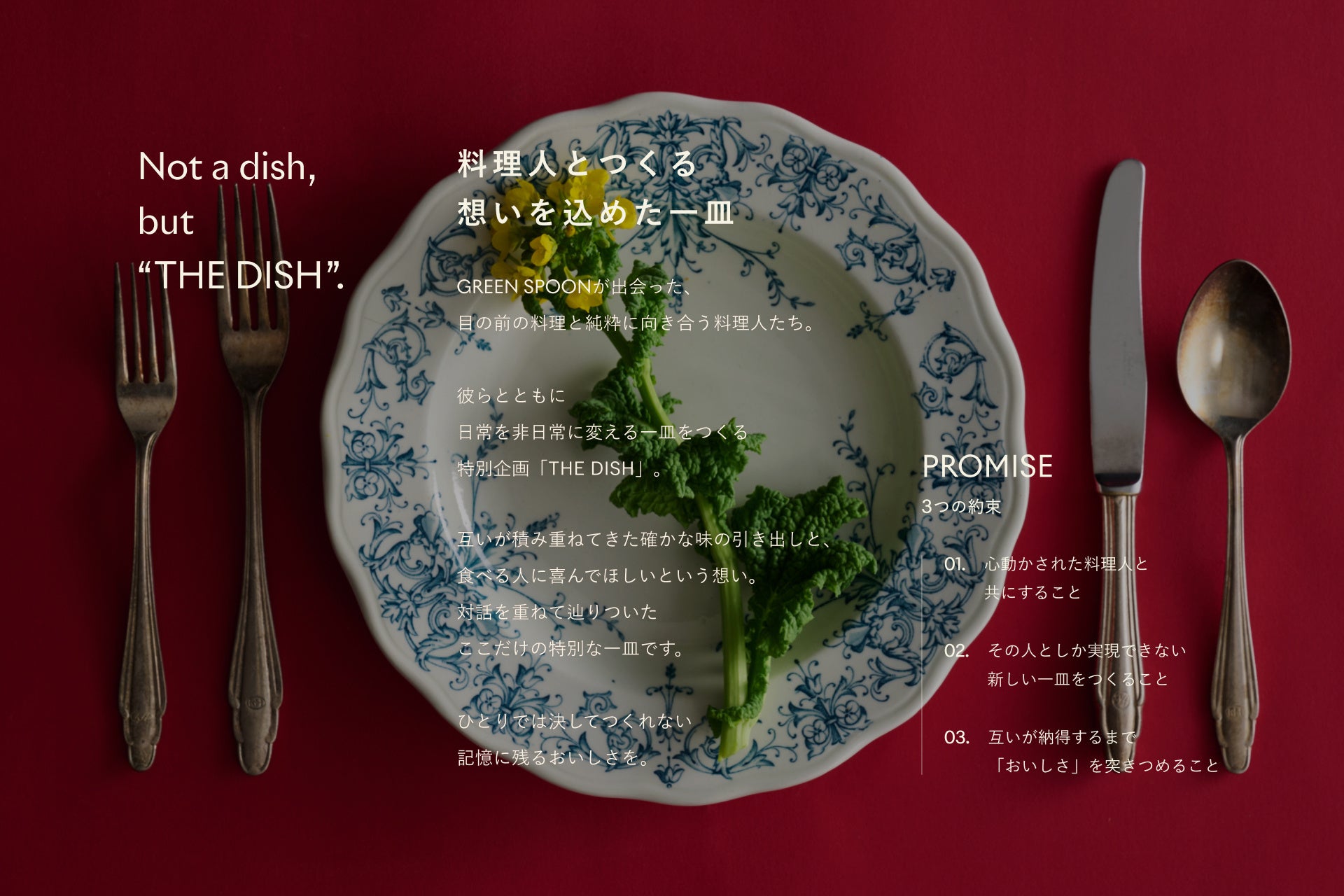 これまでGREEN SPOONとシェフたちが向き合ってきた「おいしさ」。互いが積み重ねてきた確かな味の引き出しを掛け合わせ、2026年2月25日(水)よりプレミアムシリーズ「THE DISH」として数量限定メニューを販売開始いたしました。