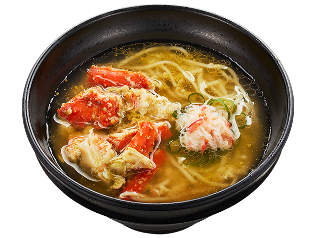 北海道産たらば蟹の旨みが溶け込んだ濃厚スープと細麺を最後まで美味しくお楽しみください。