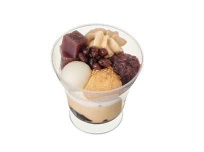 黒糖ゼリーに豆乳きなこムースとみるくムースを重ね、きなこホイップ・粒あん・わらび餅・お団子・黒糖ゼリー・かのこ豆を盛り付けた和パフェです。きなこの香ばしさとあんこの上質な甘さが織り成すハーモニーをご堪能ください。
