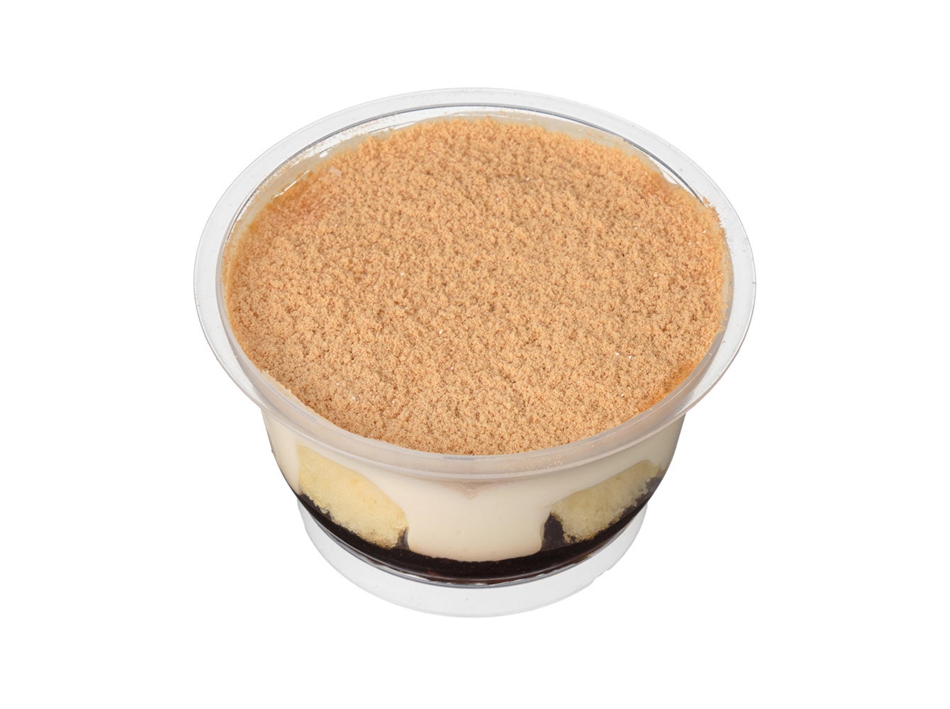 スプーンで天面のきなこチョコを割って、中のティラミスムースと底に忍ばせたとろけるおもち・黒蜜ソースを絡めて食べる、パキっと、もちっと、クリーミーでなめらかなさまざまな食感を楽しめるティラミス。国産大豆100%のきな粉をかけ、きな粉本来の香ばしさを楽しめます。