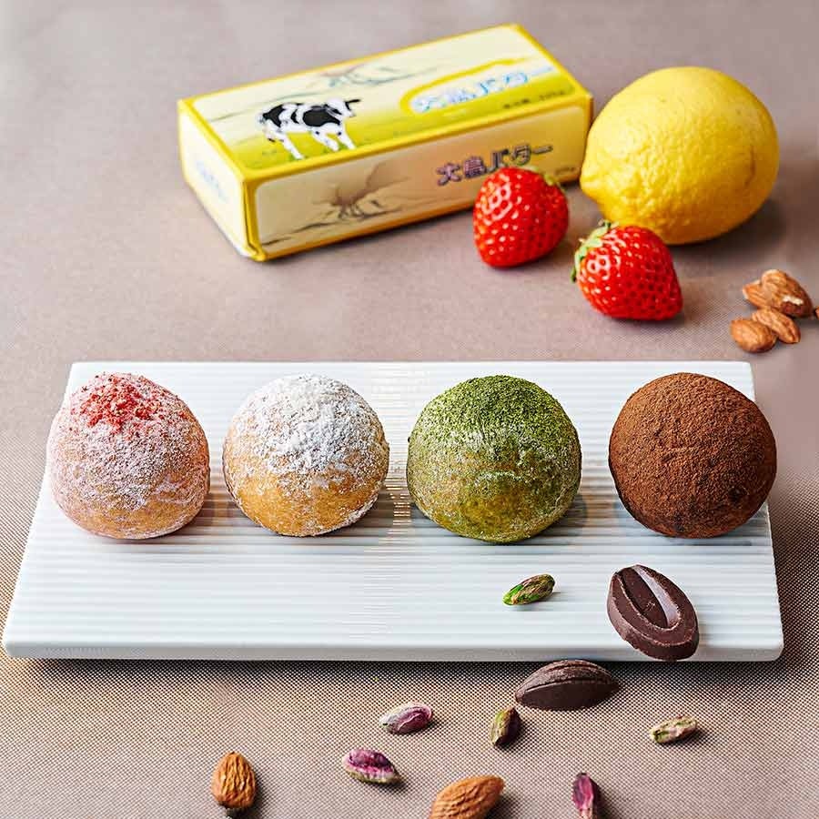 練馬の完熟苺とマスカルポーネの春らしい香りのティラミス風「イチゴ」、酒粕とアーモンドの濃厚な余韻を楽しめる「ジャンドゥイヤ」、伊豆大島牛乳とピスタチオの濃厚なクリームに東京狭山茶の苦味を利かせた「ピスタチオ」と、江戸伝統野菜品川蕪と瀬戸内レモンをココナッツで爽やかに仕上げたデリツィア風「レモン」は見た目もポップで彩り華やぐ4種の味わいです。
