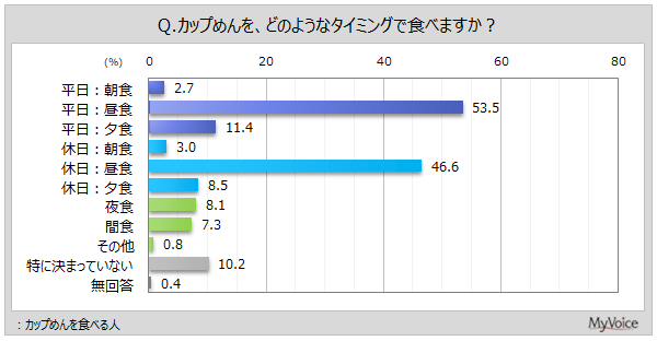 カップめんを食べる人に、どのようなタイミングでカップめんを食べるかを聞きました(複数回答)。