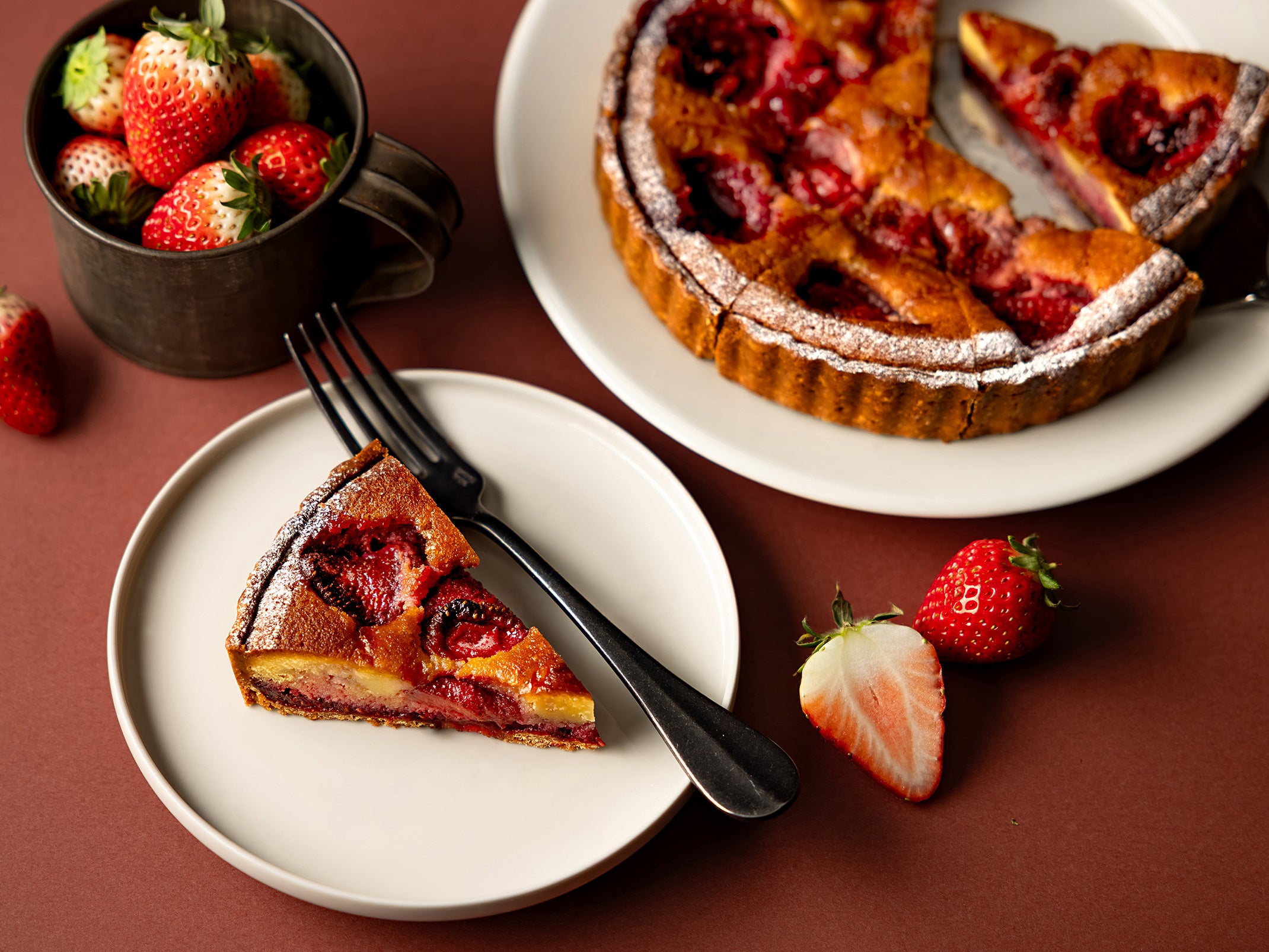 サクサクのタルト生地にダマンドクリーム、ジューシーないちごをたっぷりと入れて、贅沢に仕上げた「ストロベリーパイ」。トッピングのいちごは、焼き上げることで甘みが増し、香りも濃厚になりました。素材の味わいと食感を存分に楽しめる、コーヒーとも相性抜群のスイーツです。