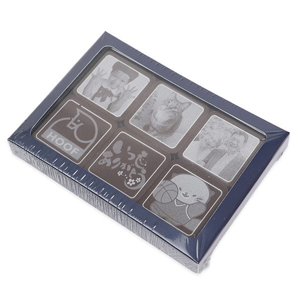 — カカオ55%のダーククーベルチュールを使用。ホワイトチョコの濃淡で写真やロゴを美しく再現 —