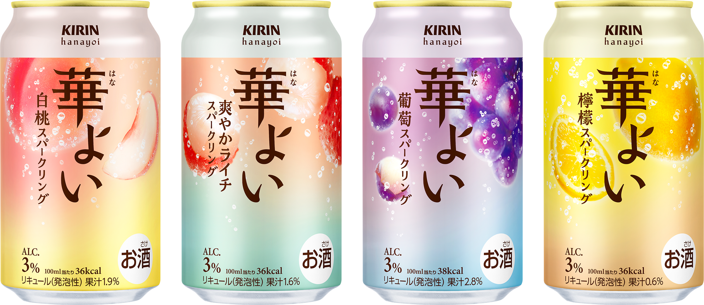 「キリン 華よい」は、こころ華やぐひとときを手軽に楽しめるALC.3%の果実スパークリング。