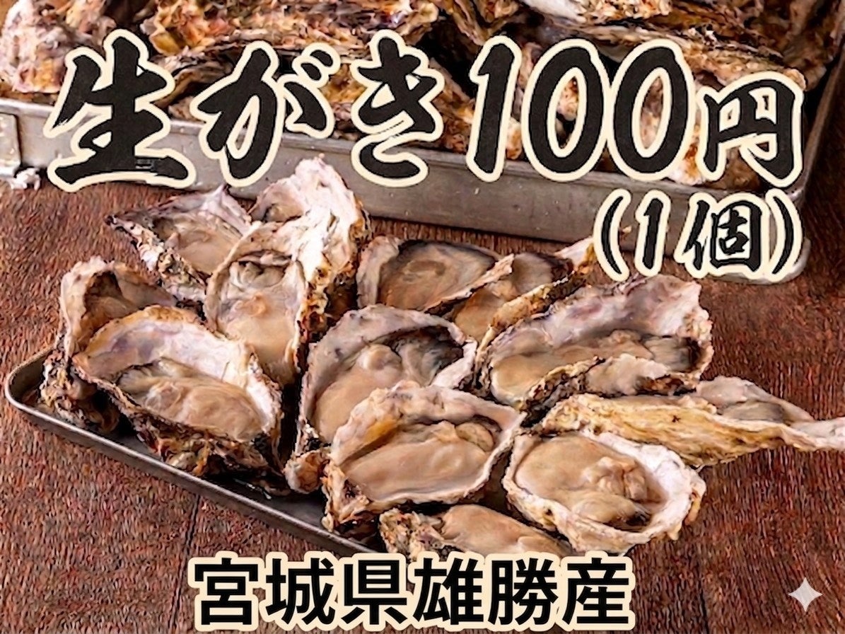 宮城県雄勝産の生牡蠣を1個100円で提供