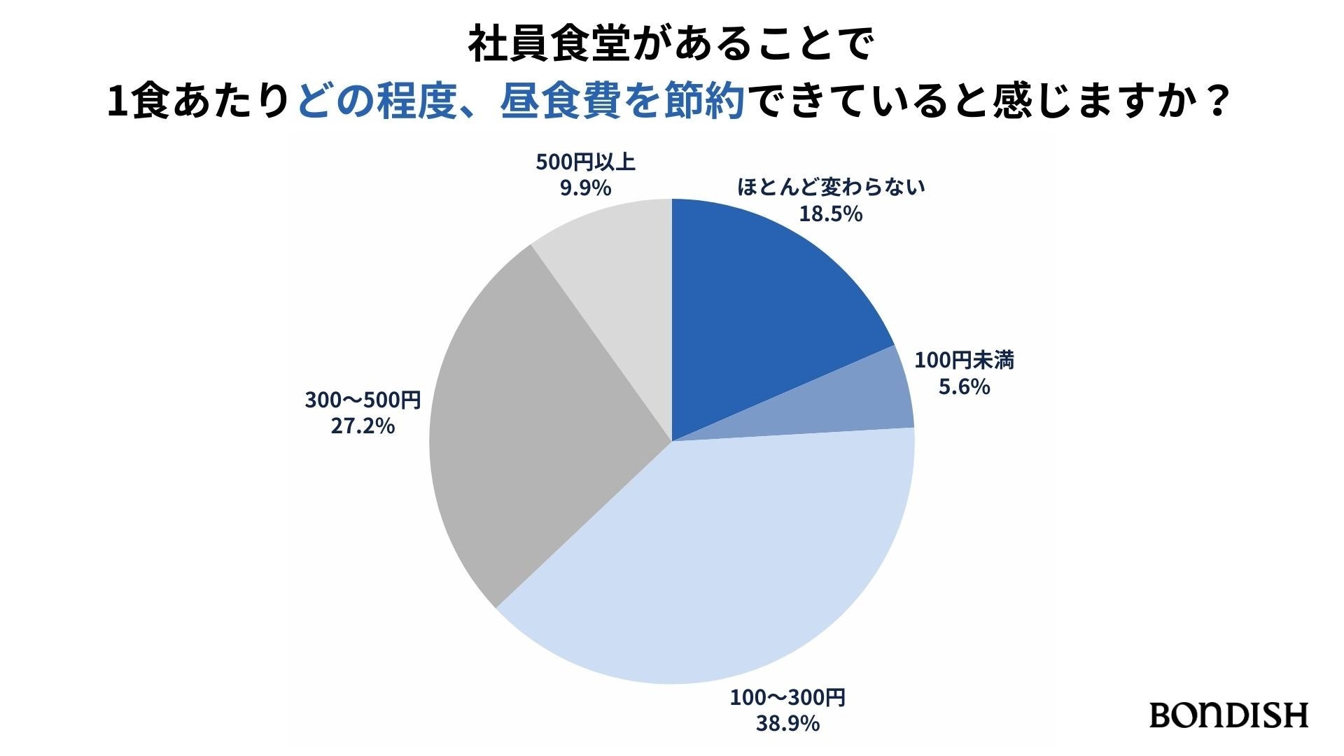 さらに、「社員食堂があることで、1食あたりどの程度昼食費を節約できていると感じますか」という質問では、全体の約8割が「昼食費が安くなっている」と回答しました。