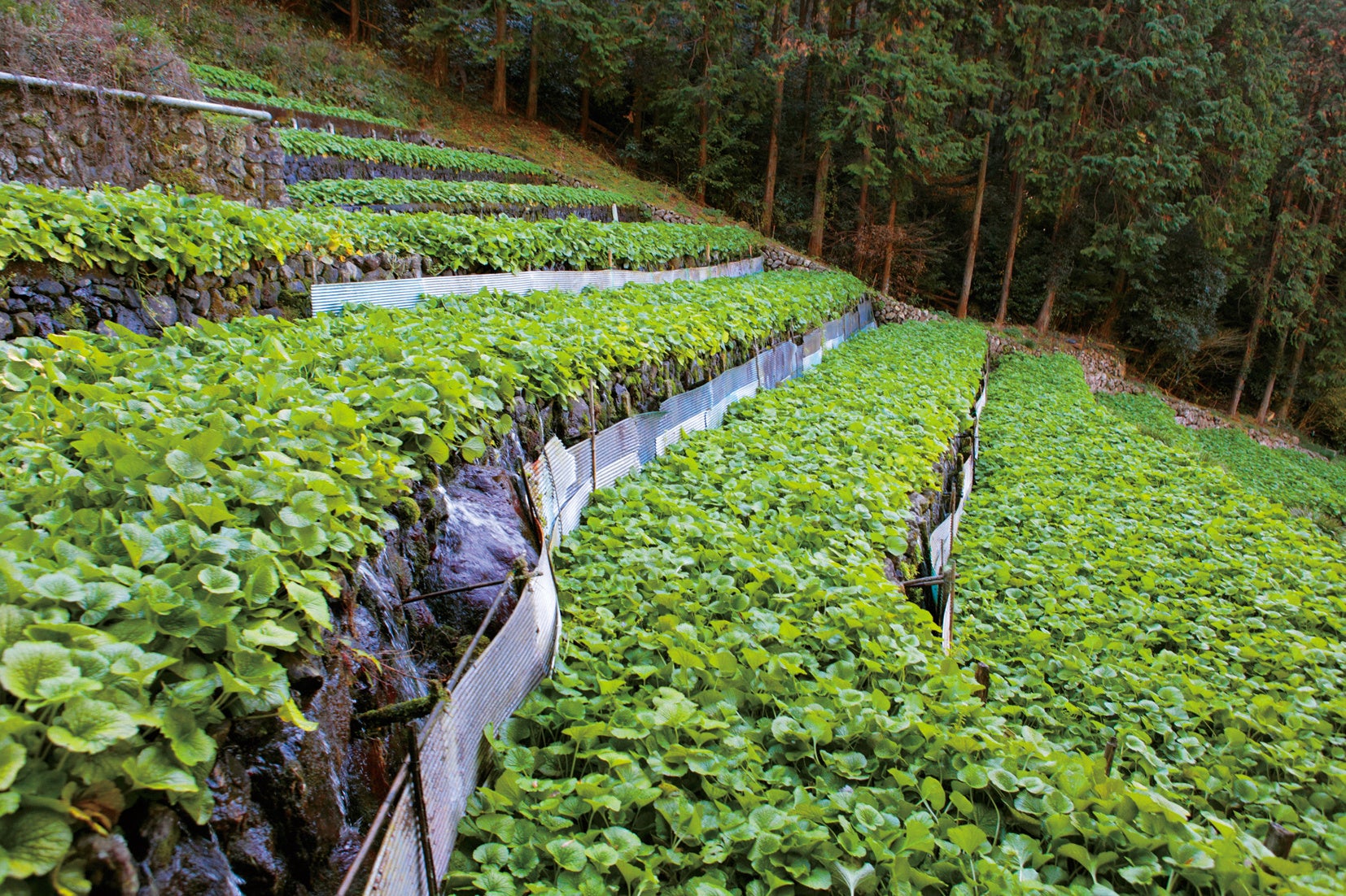 静岡県はわさび栽培発祥の地でもあり、わさび生産量は今でも日本一です。わさびは、豊富で綺麗な水と温度帯、そして浸透性の良い土壌と豊かな自然の限られた環境の中でしか育ちません。静岡県の有東木で栽培されたわさびを徳川家康に献上したところ大変気に入り門外不出にしたとも言われております。