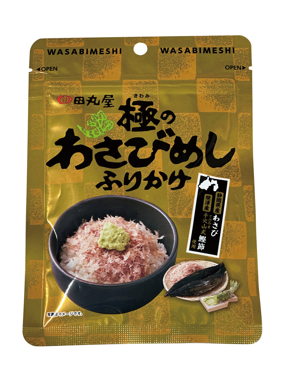 株式会社田丸屋本店(本社:静岡市、代表取締役:望月啓行、以下田丸屋)は、「極のわさびめしふりかけ」 を4月1日(水)発売します。日本一の生産量としても知られる静岡県産のわさびと、江戸時代から続く手火山(てびやま)式製法を用いた焼津産かつおぶしを使用。静岡県ならではの魅力をつめこんだ本格ふりかけです。