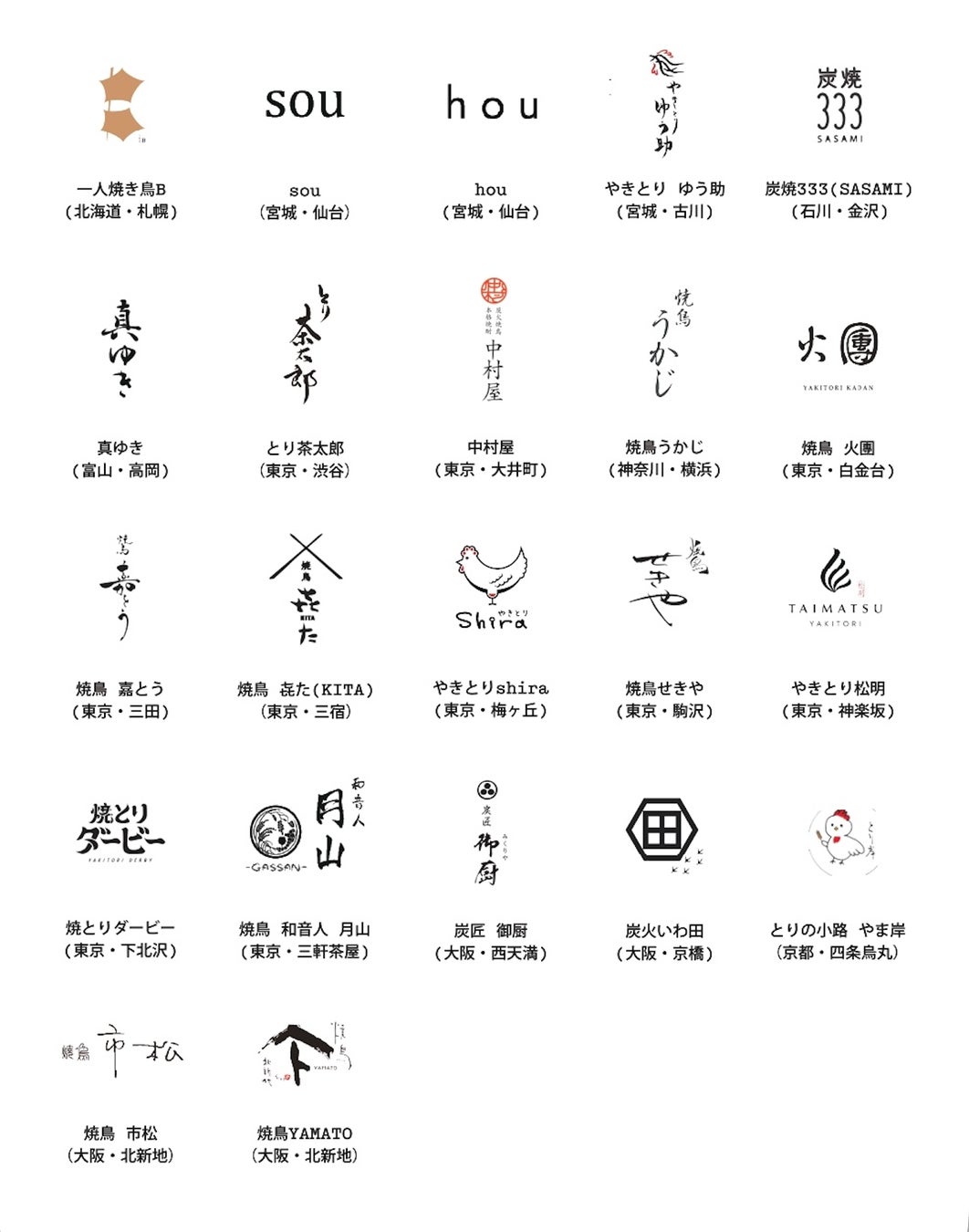 「焼鳥の新たな楽しみ方」と「山椒の未来」をともに育むパートナーとして、北海道をはじめ、東北、北陸、関東、関西など、全国各地の焼鳥の名店が、「立ち飲み焼鳥 w/REISHI GIN,」に賛同しています。