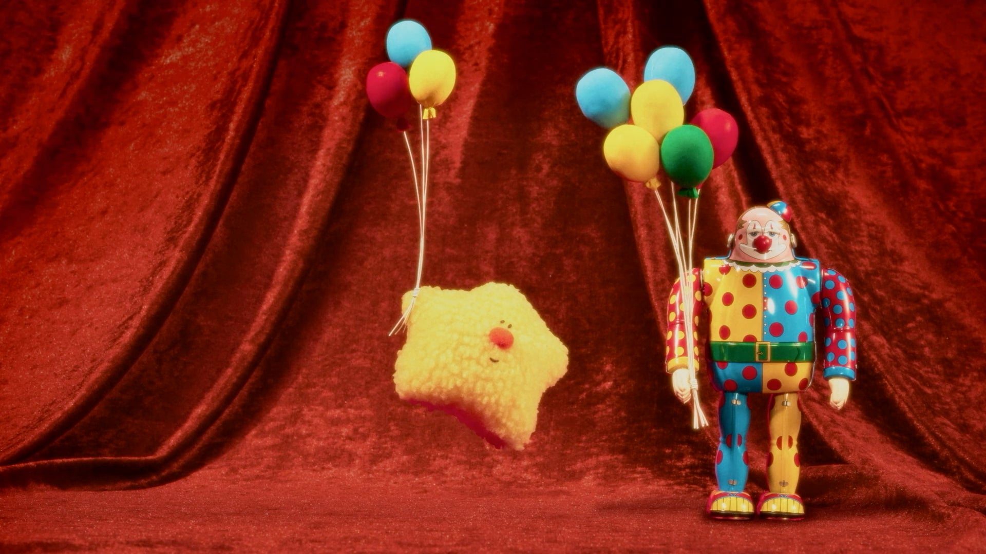 風船を持つブリキのピエロを羨ましそうに横で見つめる「ほしほし」。