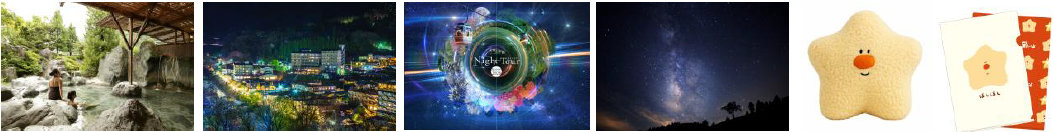 左から、「昼神温泉」、「天空の楽園ナイトツアー」、「ほしほしグッズセット」