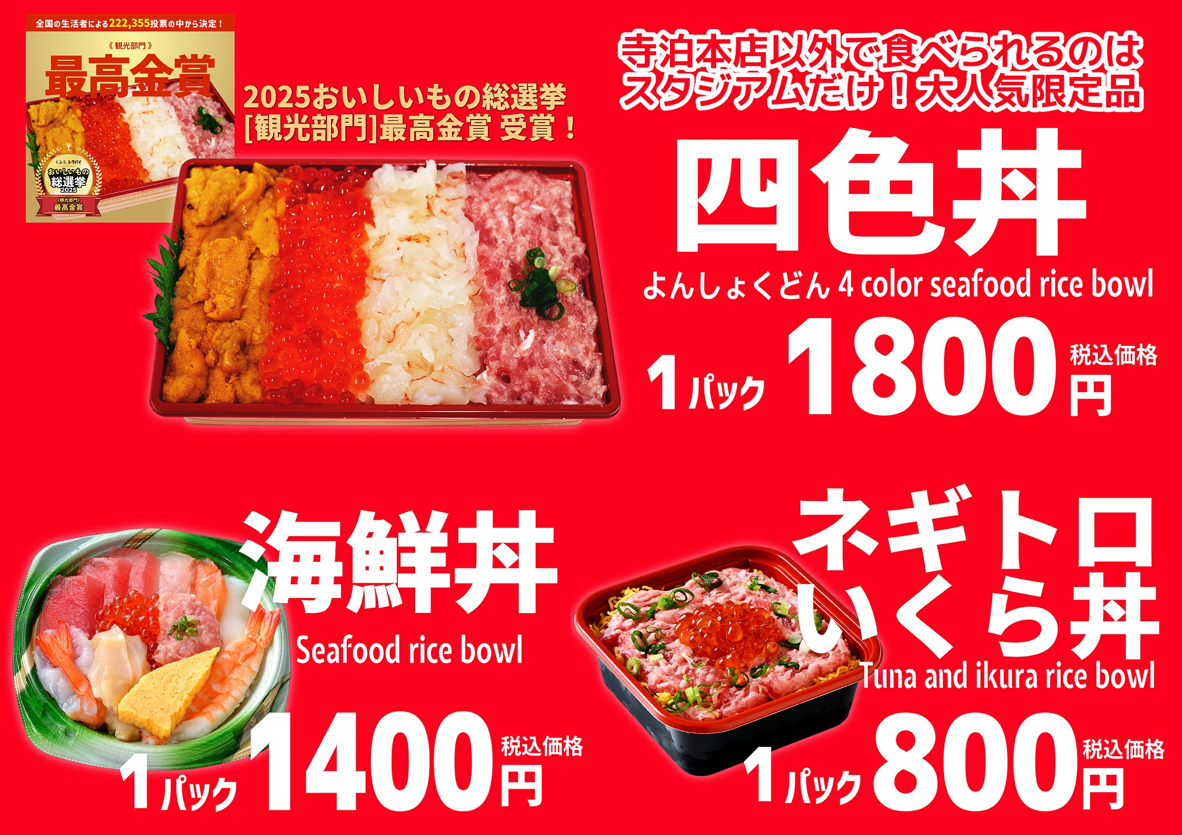 寺泊本店限定「四色丼」がスタジアムで食べられる!