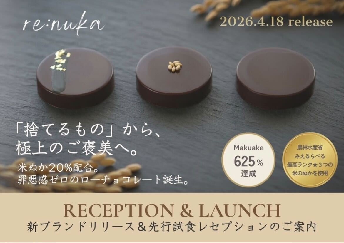 同ブランドより、米ぬかを20%配合したチョコレート「re:nukaチョコ」を、2026年4月18日(土)にオンラインショップにて発売いたします。