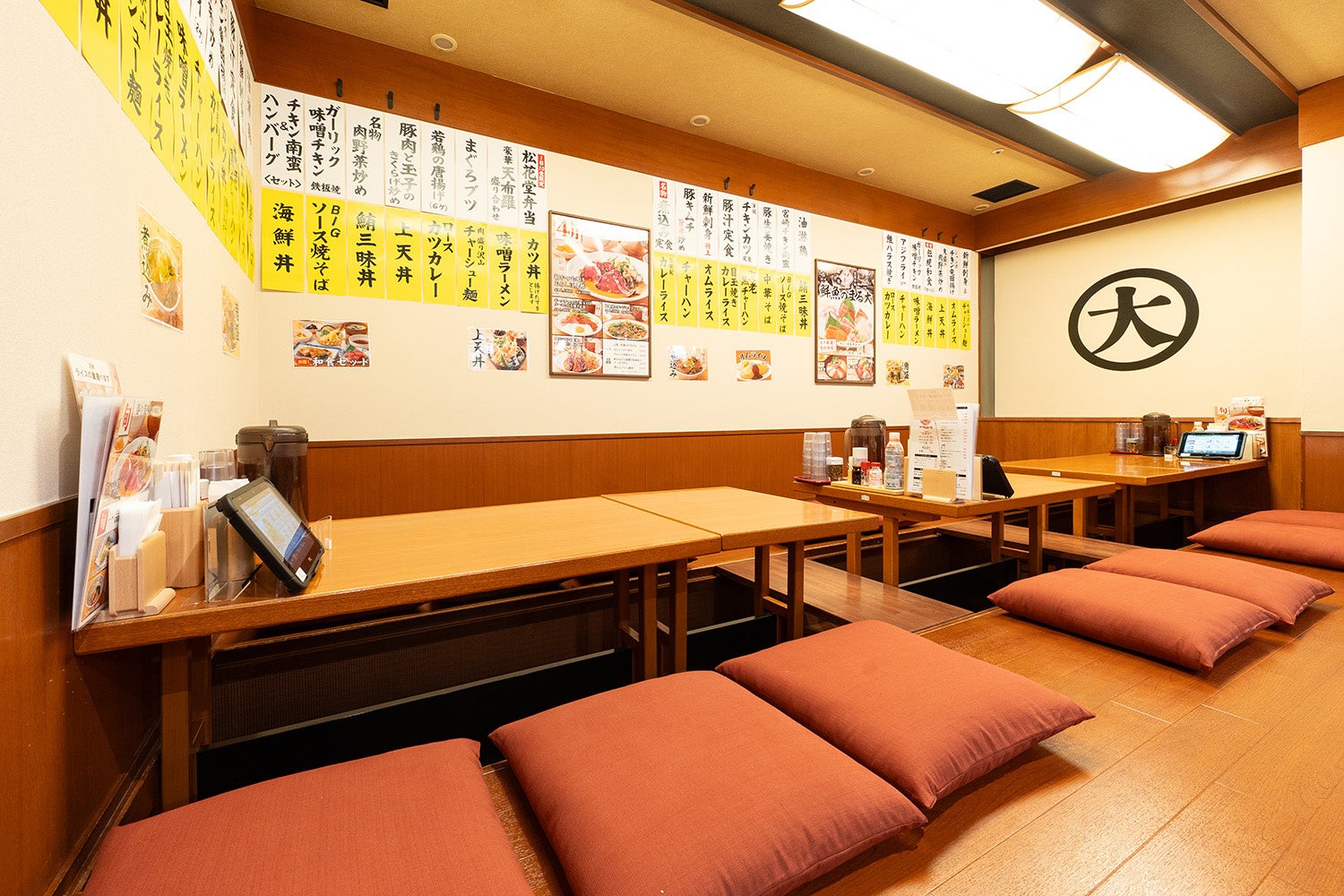 どこか懐かしい昭和レトロな佇まいの中観。店内は明るく広々としており、家族でゆったりと過ごせる座敷やボックス席を用意しています。
