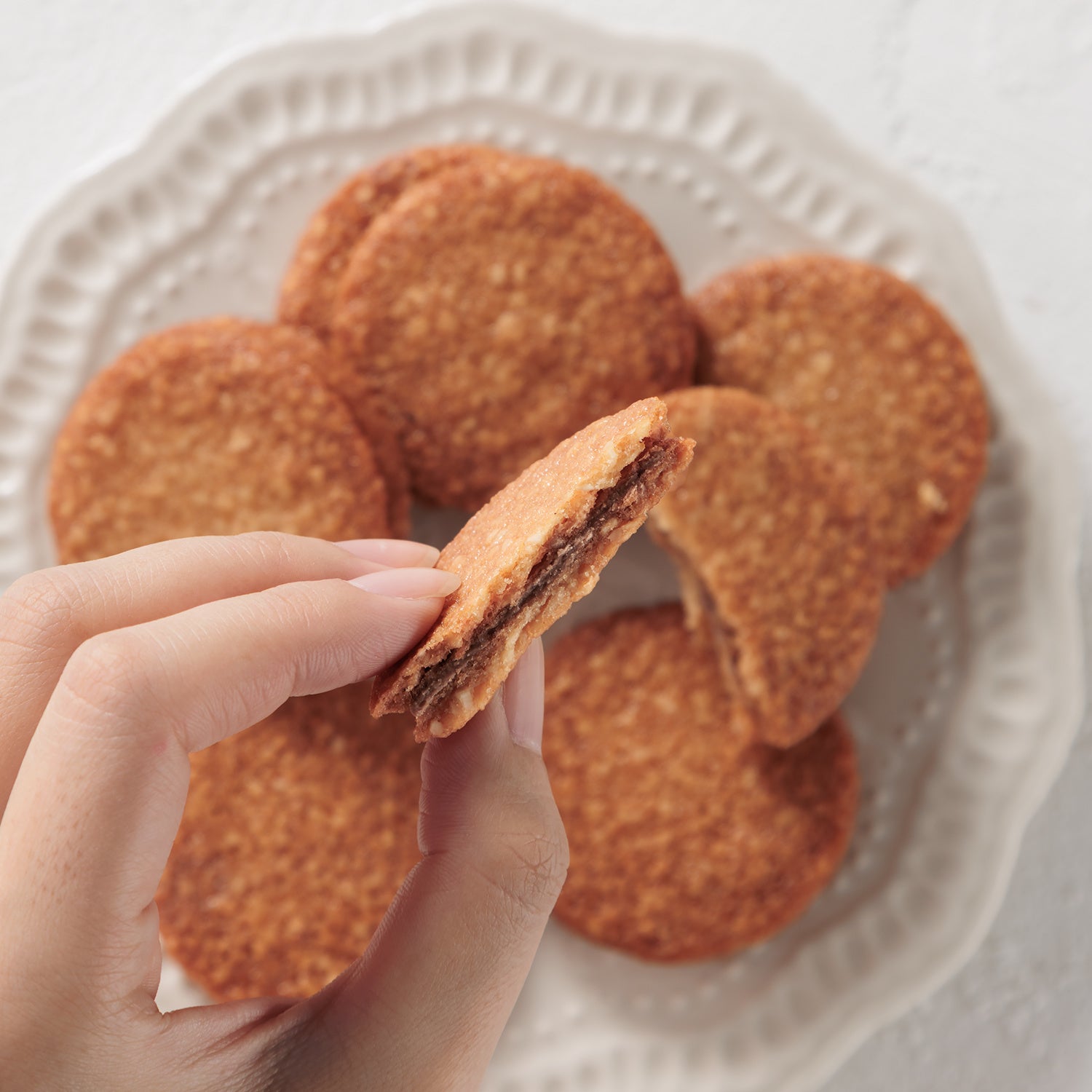 香ばしいアーモンド、リッチなグラスフェッドバター、キャラメルショコラ、ゲランドの塩。甘さ×香ばしさ×塩気が重なり合い、1枚のクッキーに豊かな表情と奥行きを与えています。