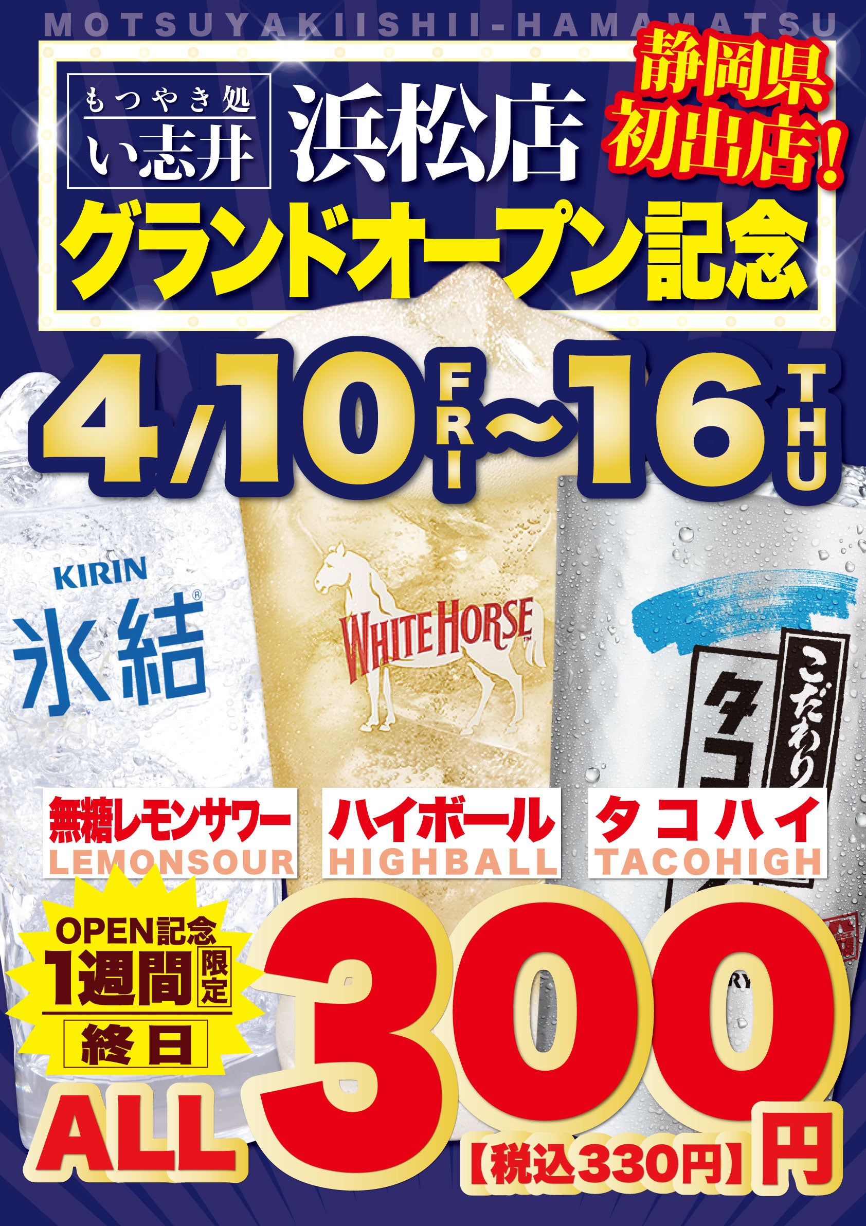 < 『もつやき処 い志井 浜松店』 オープン記念キャンペーン >