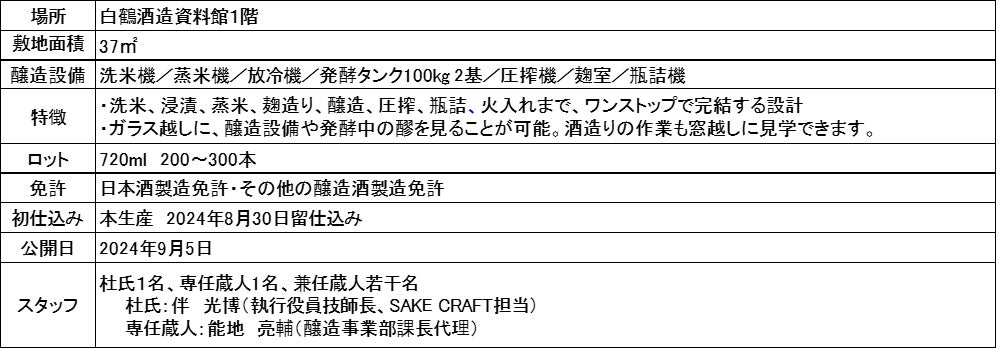 白鶴酒造資料館内に2024年9月にオープンしたマイクロブルワリーです。わずか37㎡の空間に、最高品質の大吟醸も造ることができる設備を導入し、洗米・浸漬・蒸米・製麹・発酵・搾り・ろ過・瓶詰めまで、酒造りの全工程を行います。来館者は、ガラス越しに醸造設備や発酵中の醪を見ることができ、スケジュールが合えば酒造りの作業も見学することができます。