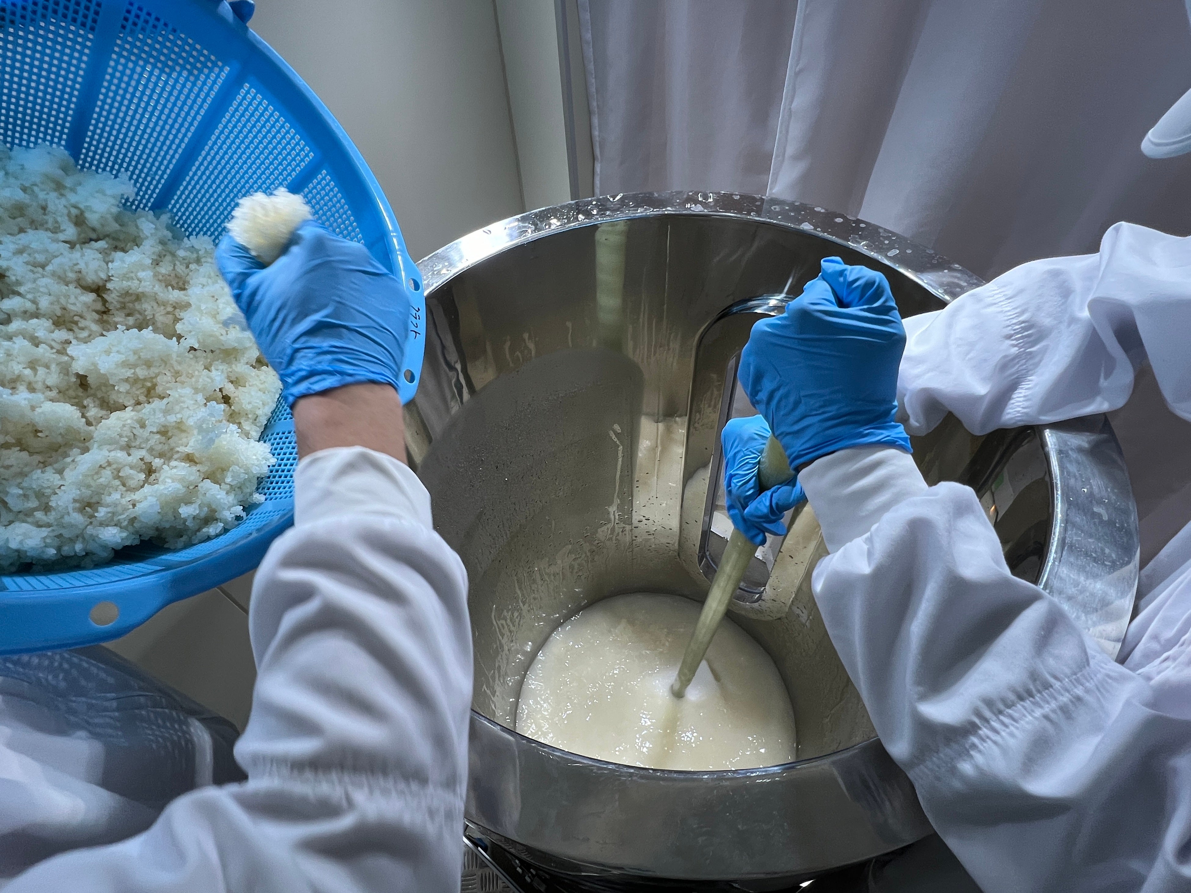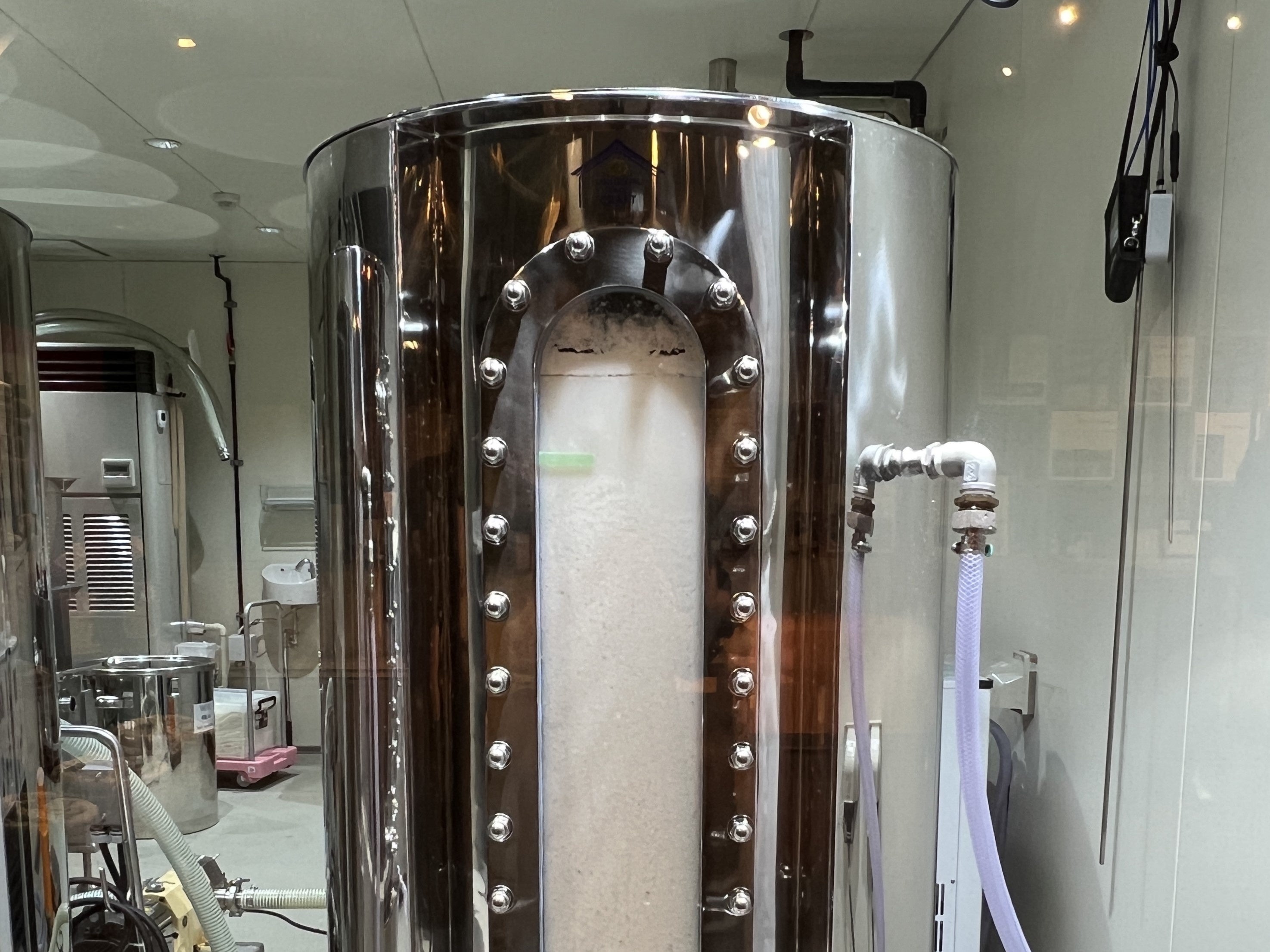 白鶴酒造資料館内に2024年9月にオープンしたマイクロブルワリーです。わずか37㎡の空間に、最高品質の大吟醸も造ることができる設備を導入し、洗米・浸漬・蒸米・製麹・発酵・搾り・ろ過・瓶詰めまで、酒造りの全工程を行います。来館者は、ガラス越しに醸造設備や発酵中の醪を見ることができ、スケジュールが合えば酒造りの作業も見学することができます。