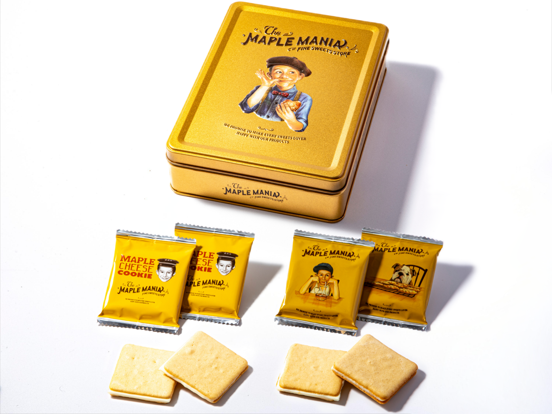 不動の人気を誇る「メープルバタークッキー」と、グランスタ限定の「メープルショコラクッキー」を詰め合わせた限定缶です。ブランドロゴを大胆に配した高級感漂う黄金の缶は、大切な方への贈り物や東京土産にも最適です。