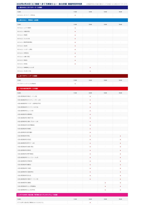 開催時間: 実施時間は店舗により異なります。詳細は後の開催店舗一覧画像、又は添付のPDFをご確認下さい。