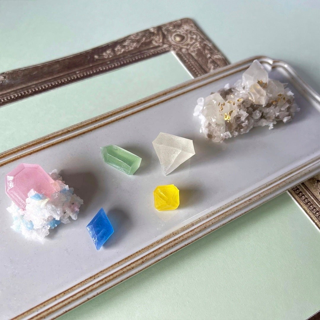 思わず飾っておきたくなる!シャリっと食感が楽しい琥珀糖【4月のこうぶつヲカシ-誕生石ダイヤモンド-】も好評販売中