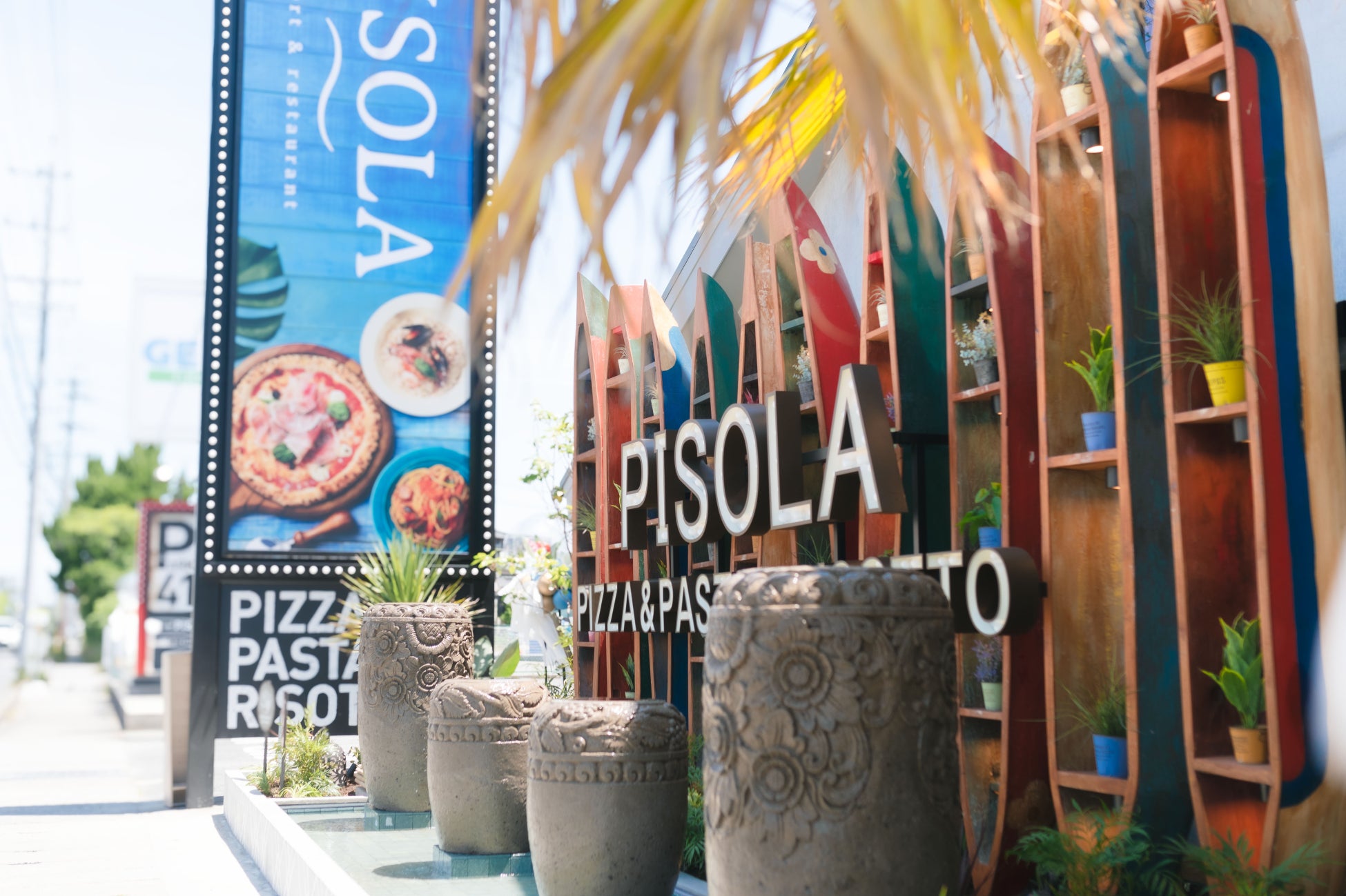 PISOLAは、「リゾート気分で、本格イタリアンを」をコンセプトに、郊外ロードサイドを中心に展開するクラフトレストランです。扉を開けた瞬間から少しだけ日常を忘れ、心がほどける——