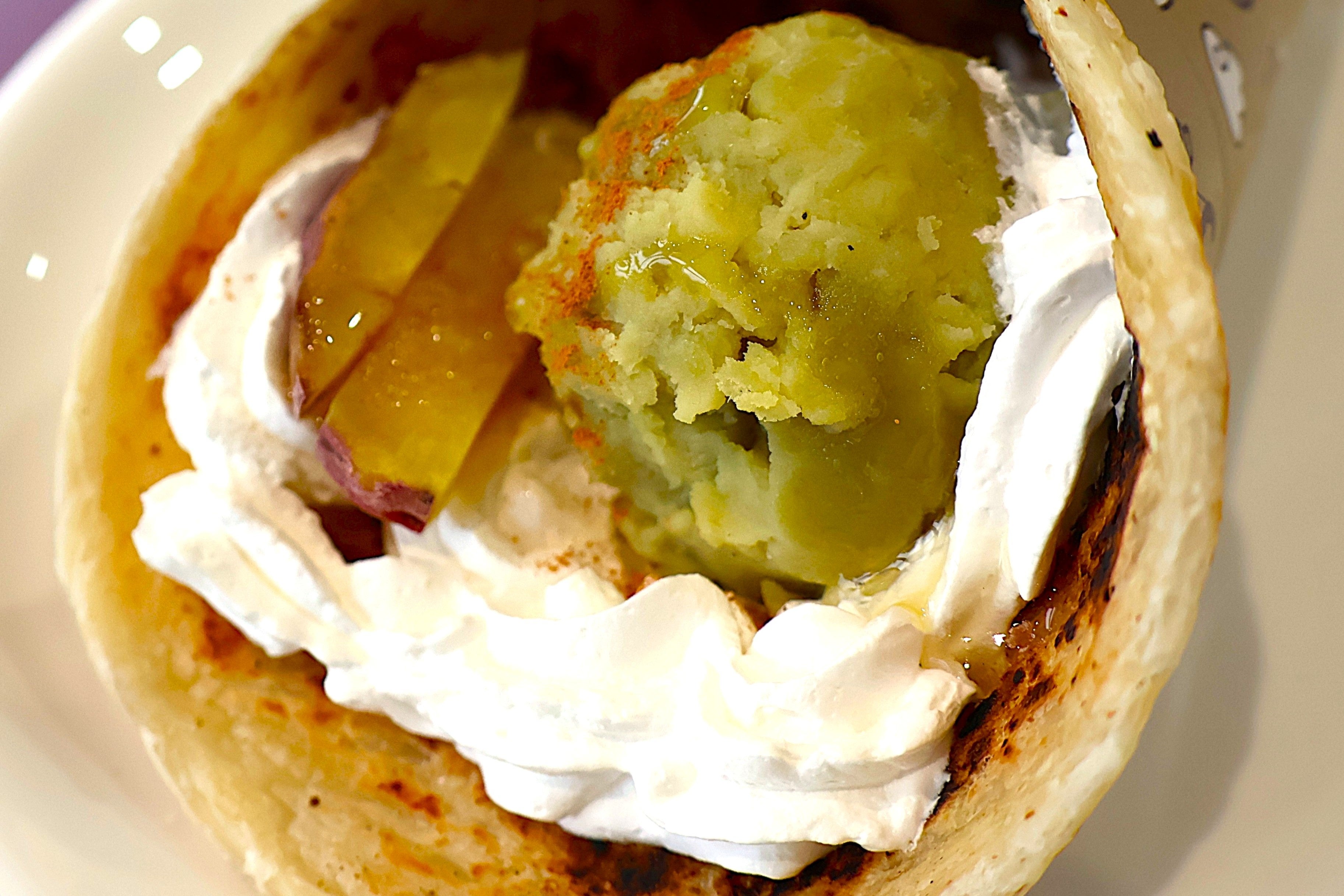 トマトソースをベースに、チョリソーのピリ辛味とディアボロソースのスパイス風味が口の中に広がるパラタピザ。サクサクモチモチな食感も相まり、次の一口が止まらない悪魔的な一品です。ボリュームもしっかりあるので、おつまみとしても食事としても大満足!