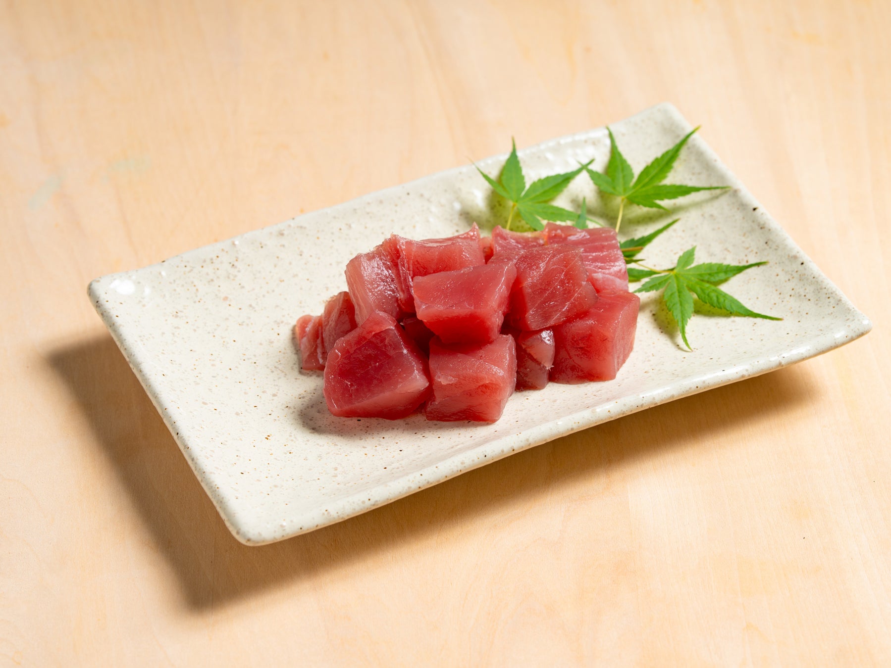 沖縄では、“生”のまぐろのブツ切りが親しまれています。ブツ切にカットすることで生まぐろのもちもちとした食感をより楽しんでいただけます。