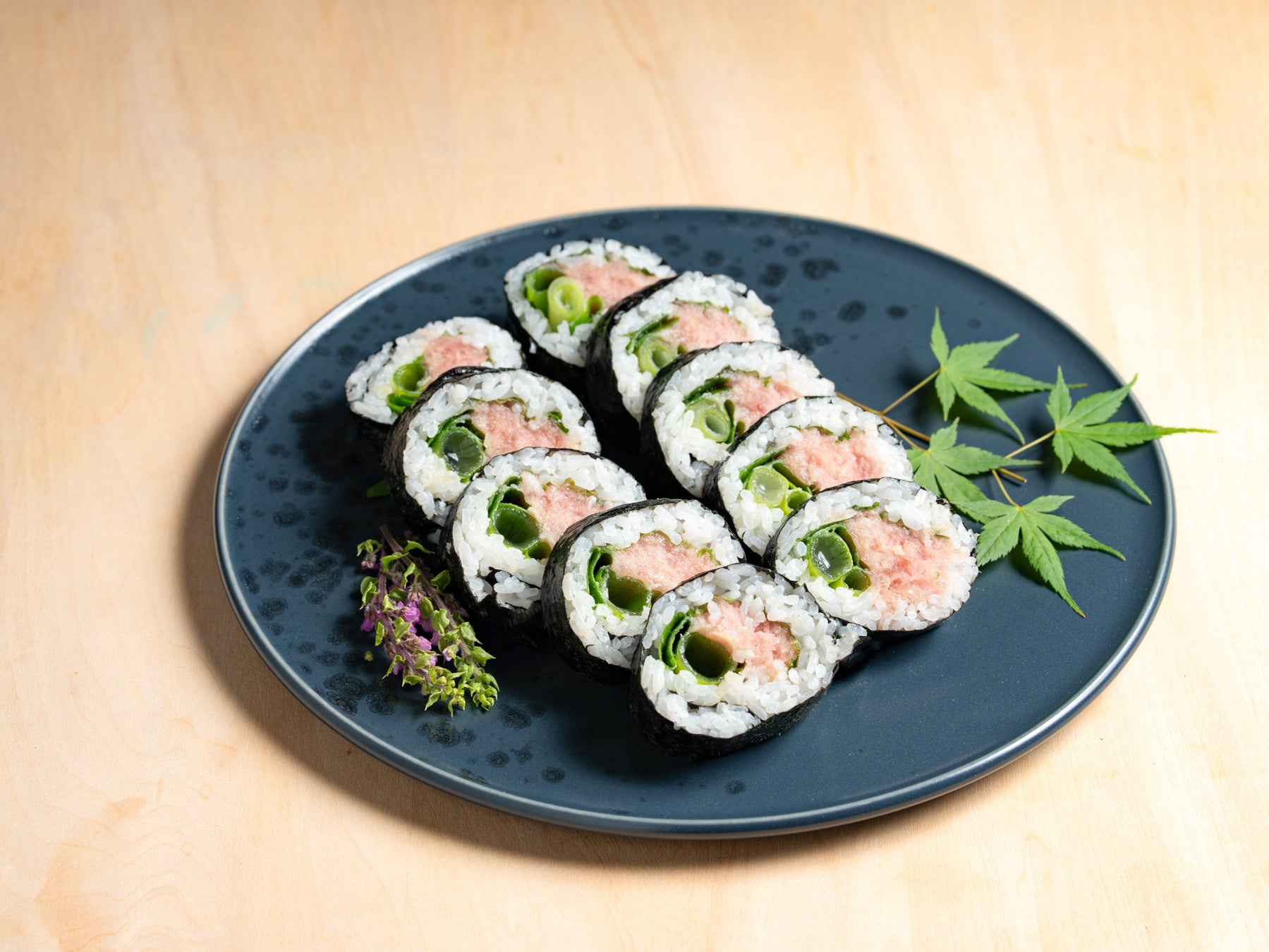 一度も冷凍していないまぐろたたきを使用した巻き寿司です。まぐろのもっちりした粘りと、葱のアクセントをお楽しみいただけます。