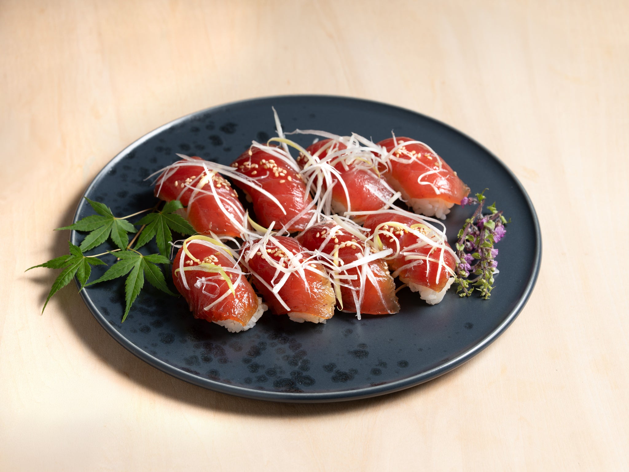 一度も冷凍していないまぐろたたきを使用した巻き寿司です。まぐろのもっちりした粘りと、葱のアクセントをお楽しみいただけます。