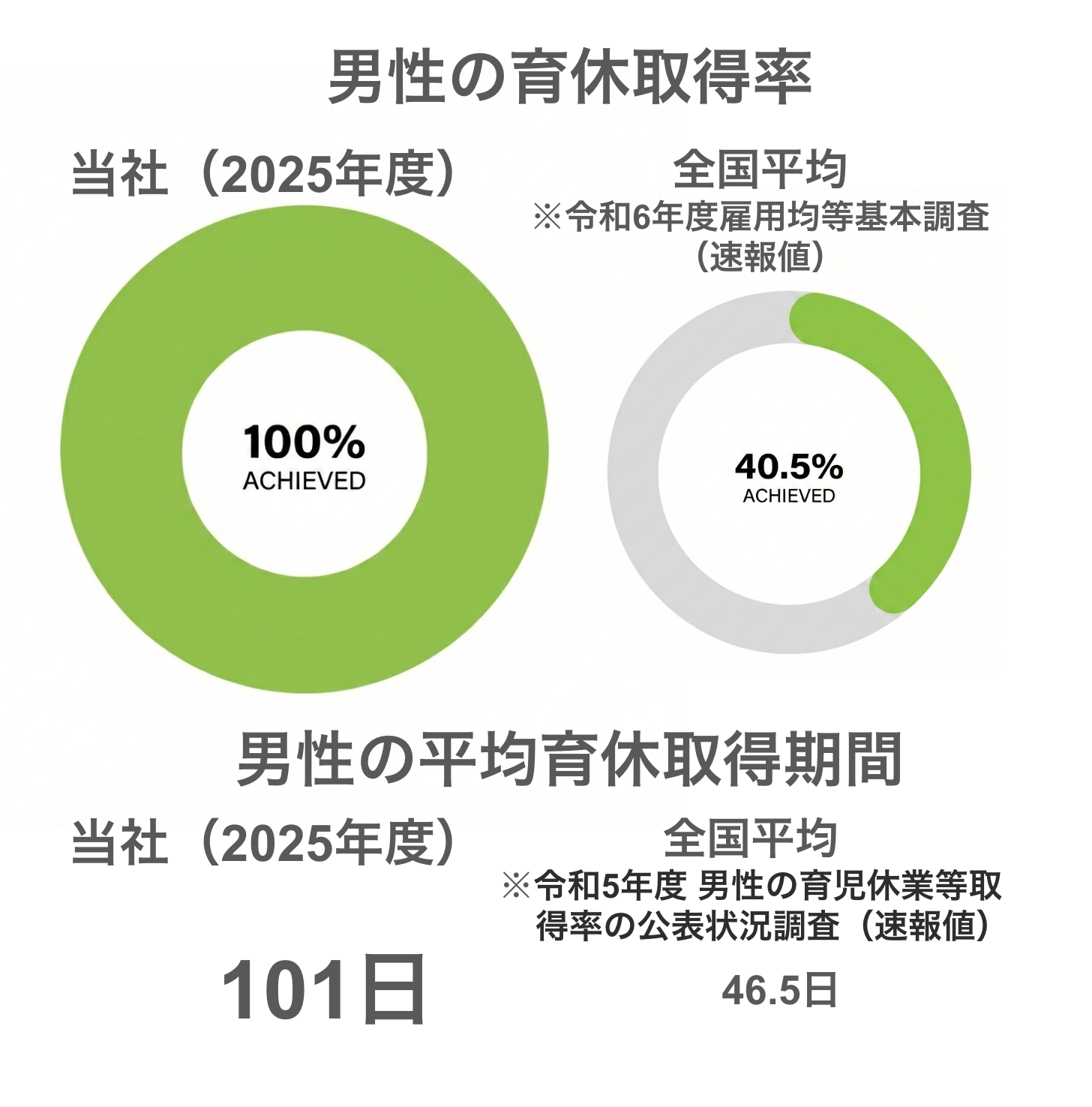 2025年10月に施行された「育児・介護休業法」の改正では、仕事と育児の両立支援に関する制度整備が盛り込まれました。具体的には、企業による育休取得の意向確認が義務化されたほか、柔軟な働き方を実現するための措置として、始業時間等の変更やテレワーク、短時間勤務など複数の働き方の選択肢を提示することなどが求められています。さらに、子の看護休暇の対象年齢が拡大されるなど、両立を支える制度は拡充されています。当社でもこれまで、法改正に先駆けて小学6年生までを対象に時短勤務制度を導入したり、独自の支援制度として「パパプラス休暇」(配偶者の出産時に付与される有休)を創設するなど、社員のライフイベントに寄り添い、働き方サポートのあり方を進化させてきました。