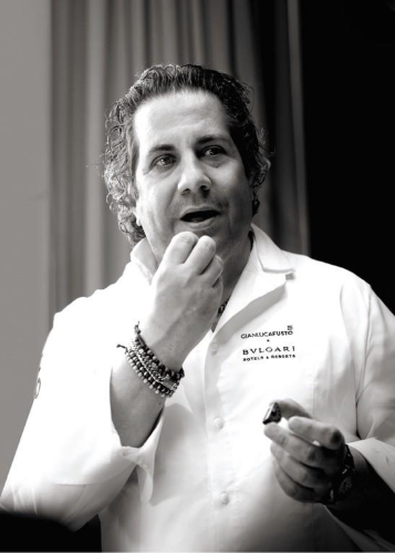 ジャンルカ・フストは「コンテンポラリー・アルチザン・ペストリー」という独自の哲学を掲げ、素材本来の魅力を最大限に引き出すクリエイティビティ、ミニマリズム、そして精緻な技術を追求し続けています。《 FUSTO Milano 》の創設者である彼は、その革新的なアプローチと卓越した技術で国際的な評価を確立し、ガンベロロッソの「Tre Torte」など数々の権威ある賞を受賞しています。また、ブルガリ イル・チョコラートのメートルショコラティエとしてチョコレートの世界に新たな風を吹き込むべく、ミラノに構える自身の工房で日夜試作に取り組んでいます。その飽くなき探求心と情熱が唯一無二の味わいと体験を生み出し続けています。