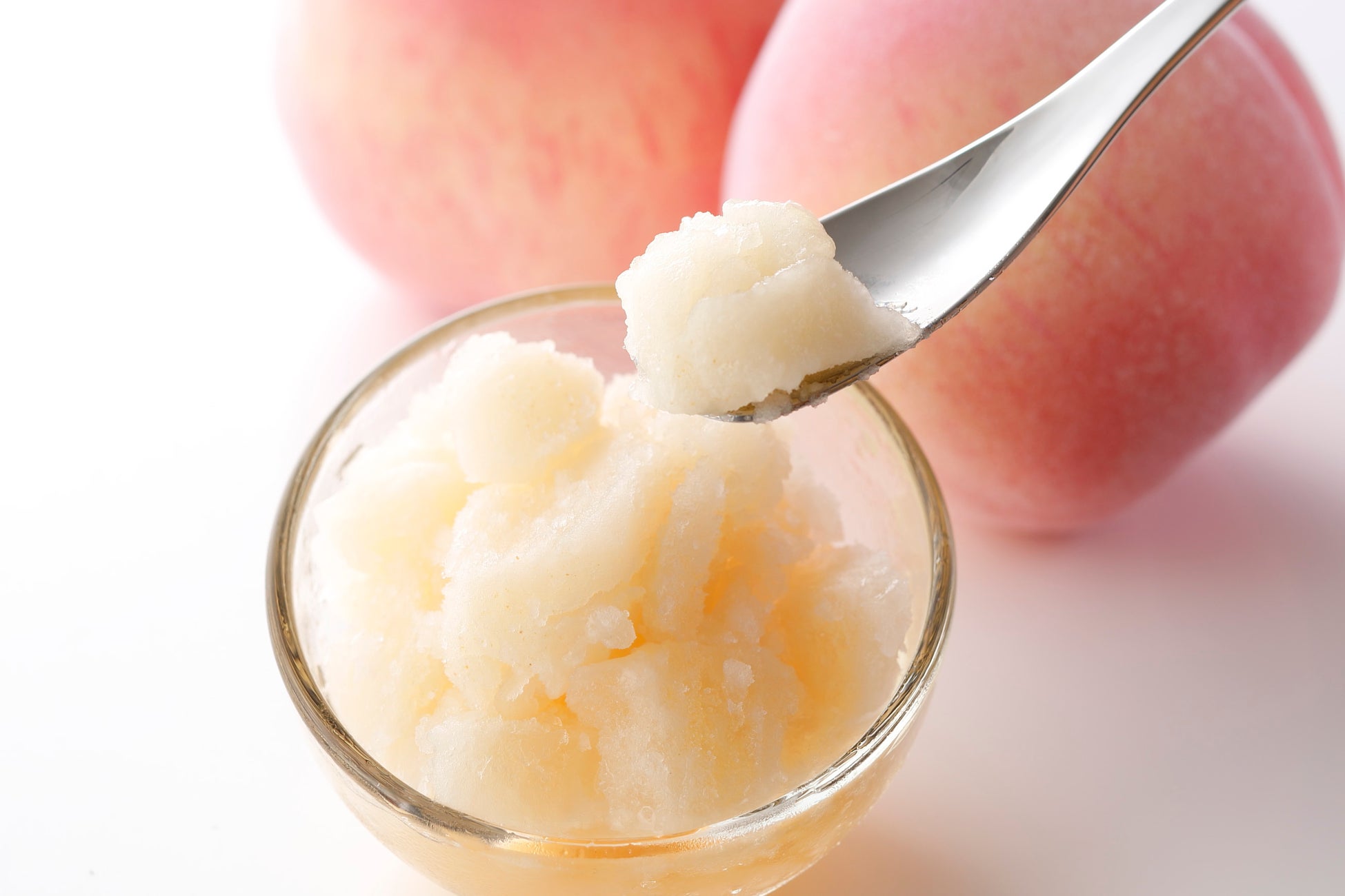 ひとつひとつ丹精を込めて育てられた福島県産白桃のピューレで作り上げたジューシーで甘美な味わい。