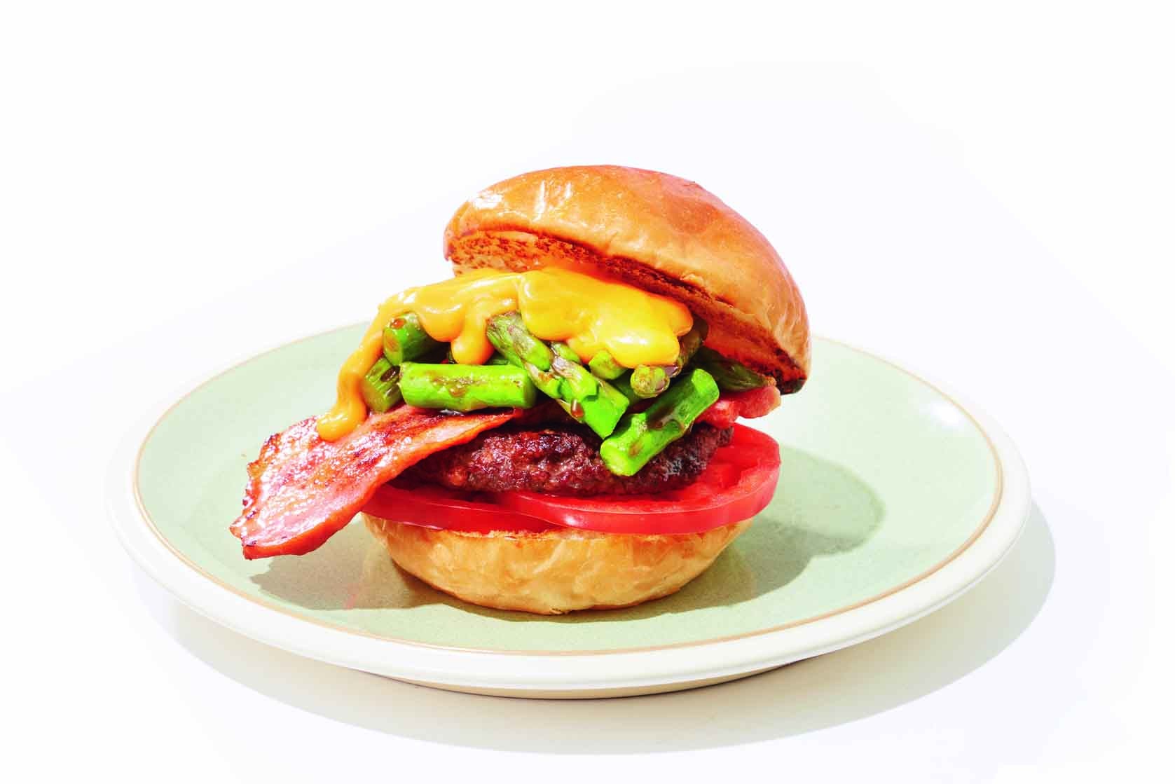 みずみずしいアスパラに、濃厚な十勝チェダーが絡み合う特製バーガー