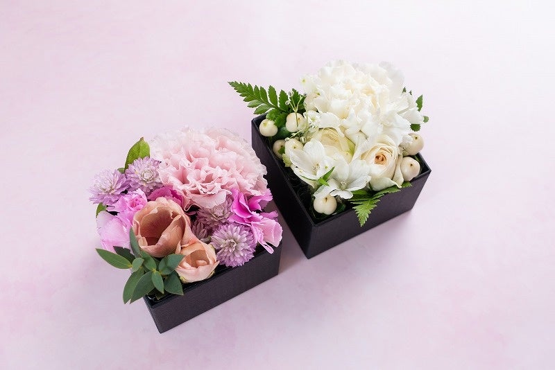 フラワーボックスは、ピンクとホワイトの2色から選べる仕様とし、贈る相手のイメージや好みに合わせてお選びいただけます。