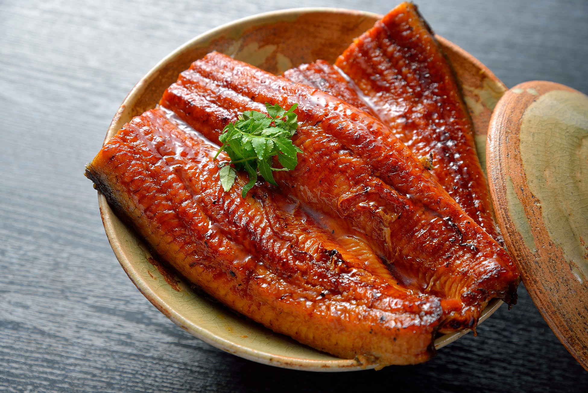 香ばしい焼き目に、照りってりのタレをあわせたうなぎ蒲焼きが上に3枚。さらに中には刻んだうなぎ蒲焼きを入れて、どこから食べてもうなぎが口にあふれます。