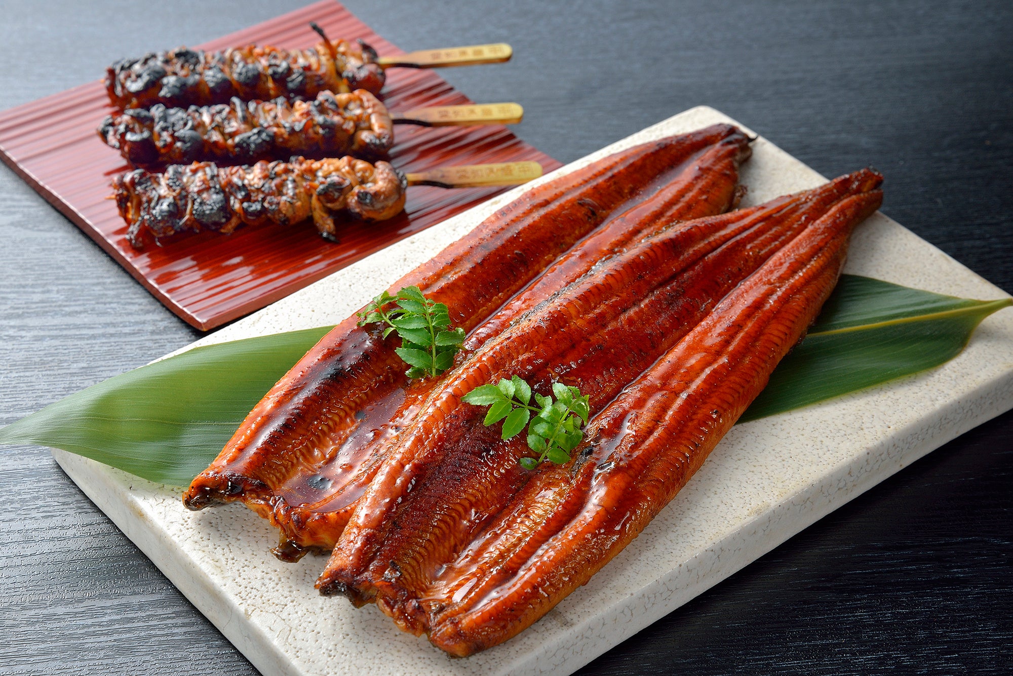 角上魚類では現在、国産うなぎ長蒲焼きや肝串などをご用意しております。