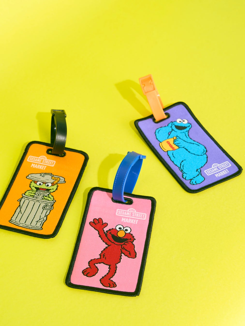 (上より時計回り:チャコールグレー(オスカー)、オレンジ(クッキーモンスター)、ブルー(エルモ))