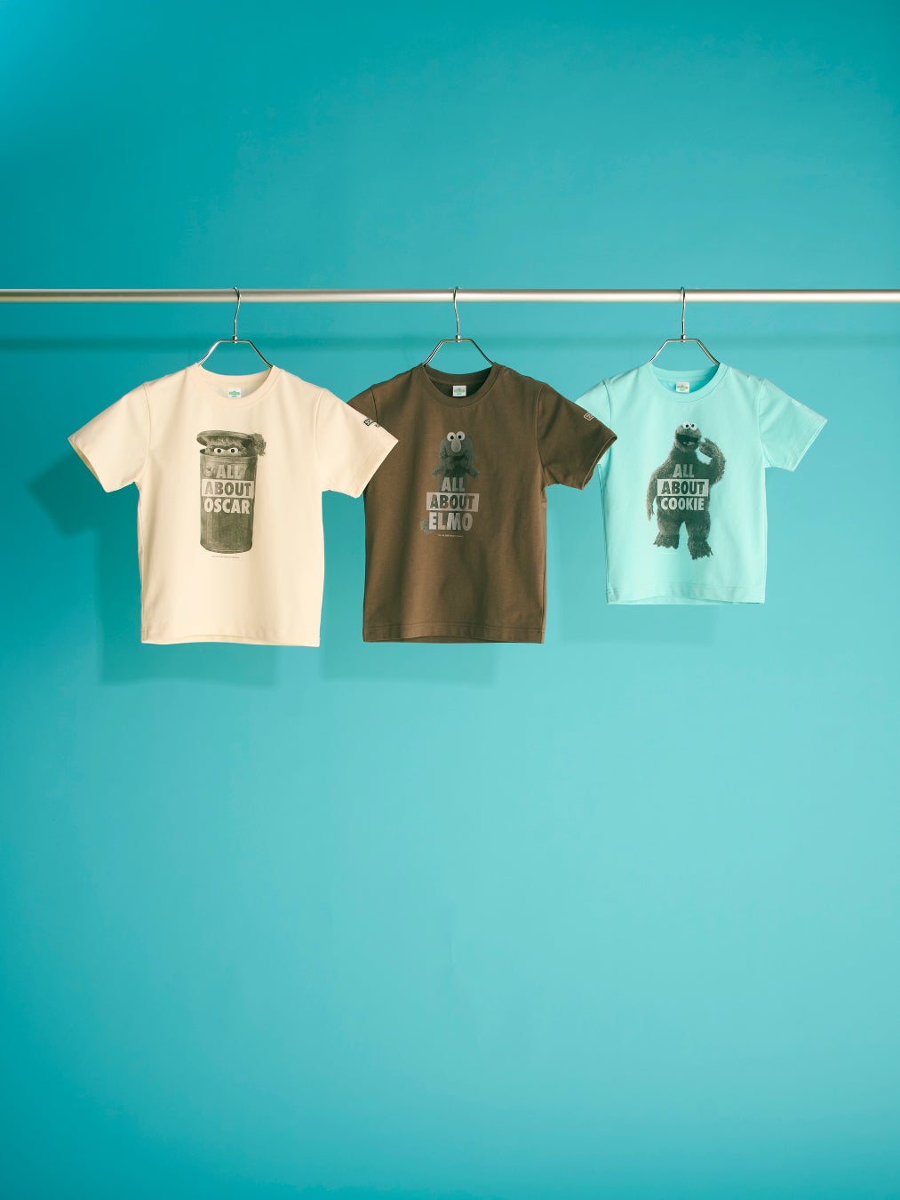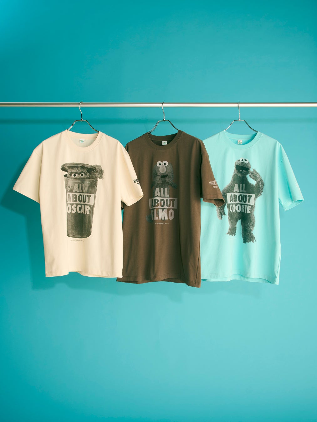 フロントにエルモ、クッキーモンスター、オスカーのモノクロフォトと”ALL ABOUT ELMO/COOKIE/OSCAR“のフレーズをあしらった、アーバンライクで洗練された雰囲気が魅力のTシャツ。背中にはそれぞれのキャラクターの名前や誕生日、趣味、好きな食べ物などのプロフィールをプリントし、前後どちらから見ても楽しめる、遊び心あふれるデザインに仕上げました。