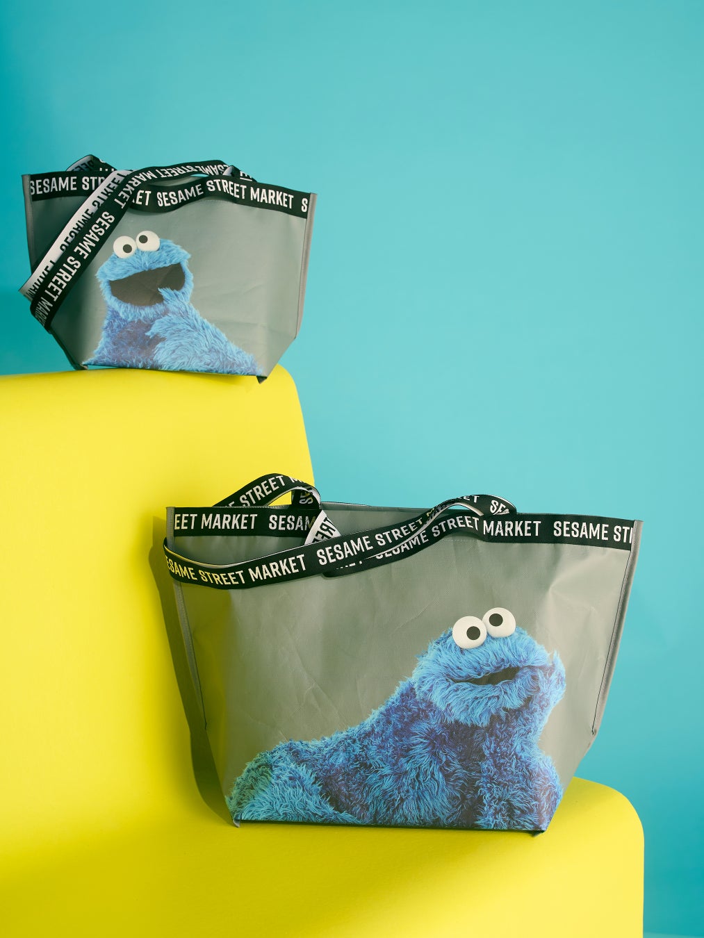 エルモ、クッキーモンスター、オスカーの楽しげな表情に、ブランドロゴをあしらったジャガードテープの持ち手を組み合わせた、カジュアルながらもスタイリッシュなデザインのトートバッグ。軽やかな持ち心地とマットな質感が特徴の、普段使いにも取り入れやすいアイテムです。