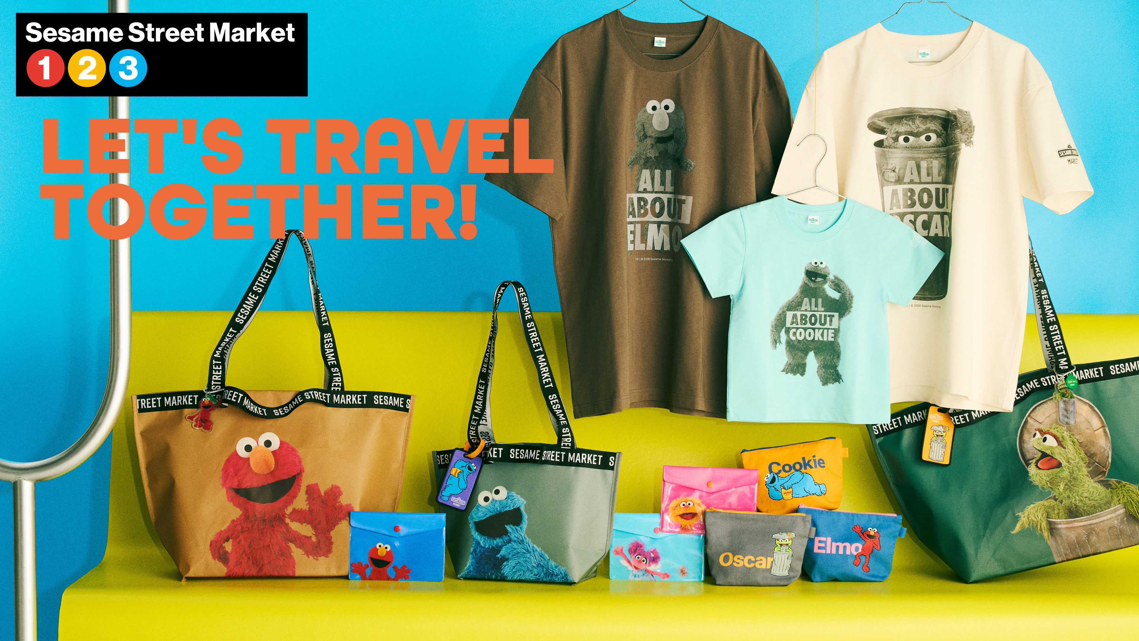 株式会社マッシュスタイルラボ(本社:東京都千代田区/代表取締役社長:近藤広幸)が展開する物販・カフェ・ワークショップを複合した世界で唯一のセサミストリートのオフィシャルストア「セサミストリートマーケット」では、「LET’S TRAVEL TOGETHER」をテーマとするコレクションを、4月16日(木)よりセサミストリートマーケット 池袋サンシャインシティ店、アーバンドック ららぽーと豊洲店、阪神梅田本店、玉川髙島屋S.C.店およびオフィシャルオンラインストアにて発売いたします。