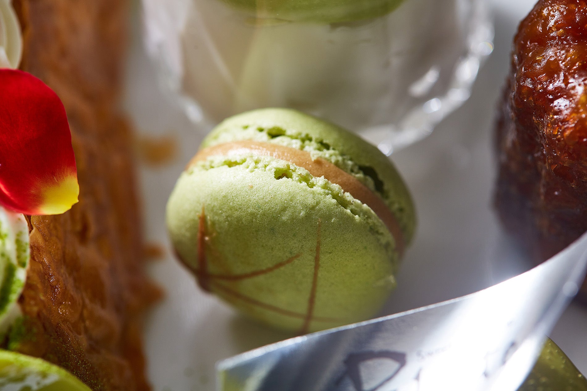 抹茶やピスタチオを使用したスイーツを中心に、見た目と味わいともに爽やかな品々が並ぶアフタヌーンティーは、まるで新緑の風景をそのまま閉じ込めたかのような逸品。