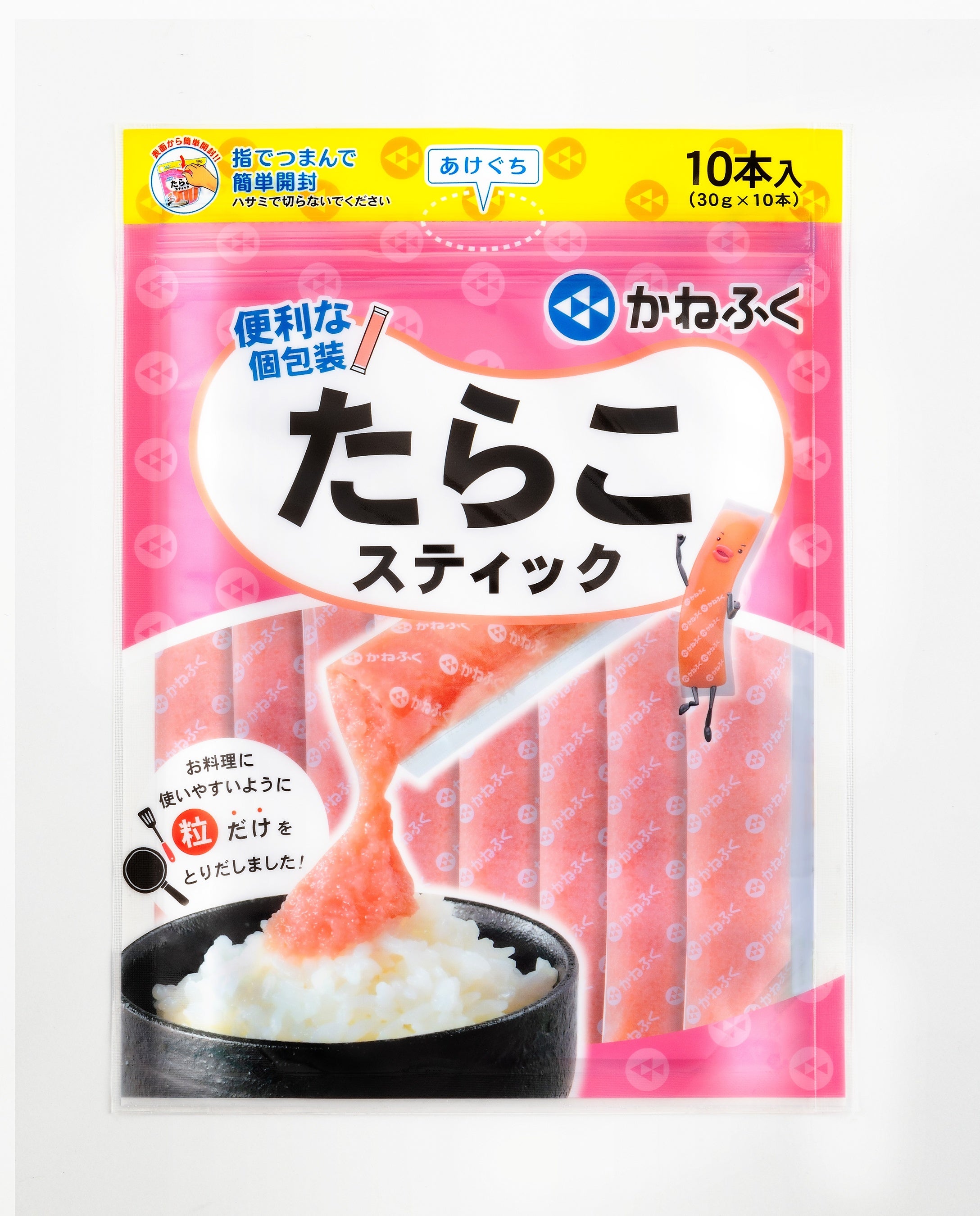 「明太子スティック」は、皮を取り除き粒だけにした明太子で、そのままでも料理でも使える便利な商品です。定量包装・冷凍保存が可能で、「簡単・便利・衛生的」として人気があります。