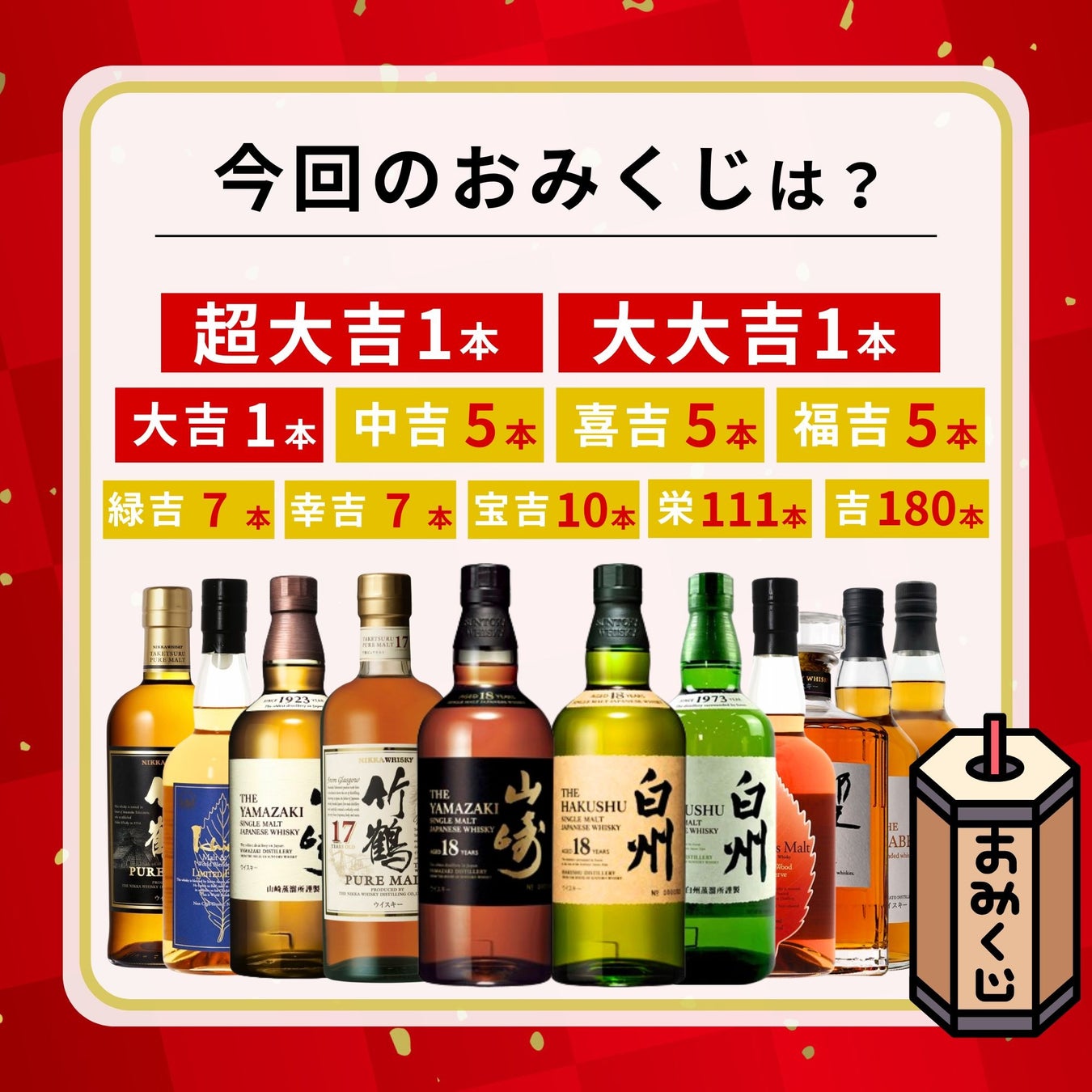 1等は幻の山崎18年、2等に白州18年。特別企画”さくら満開みくじ”が予約販売開始