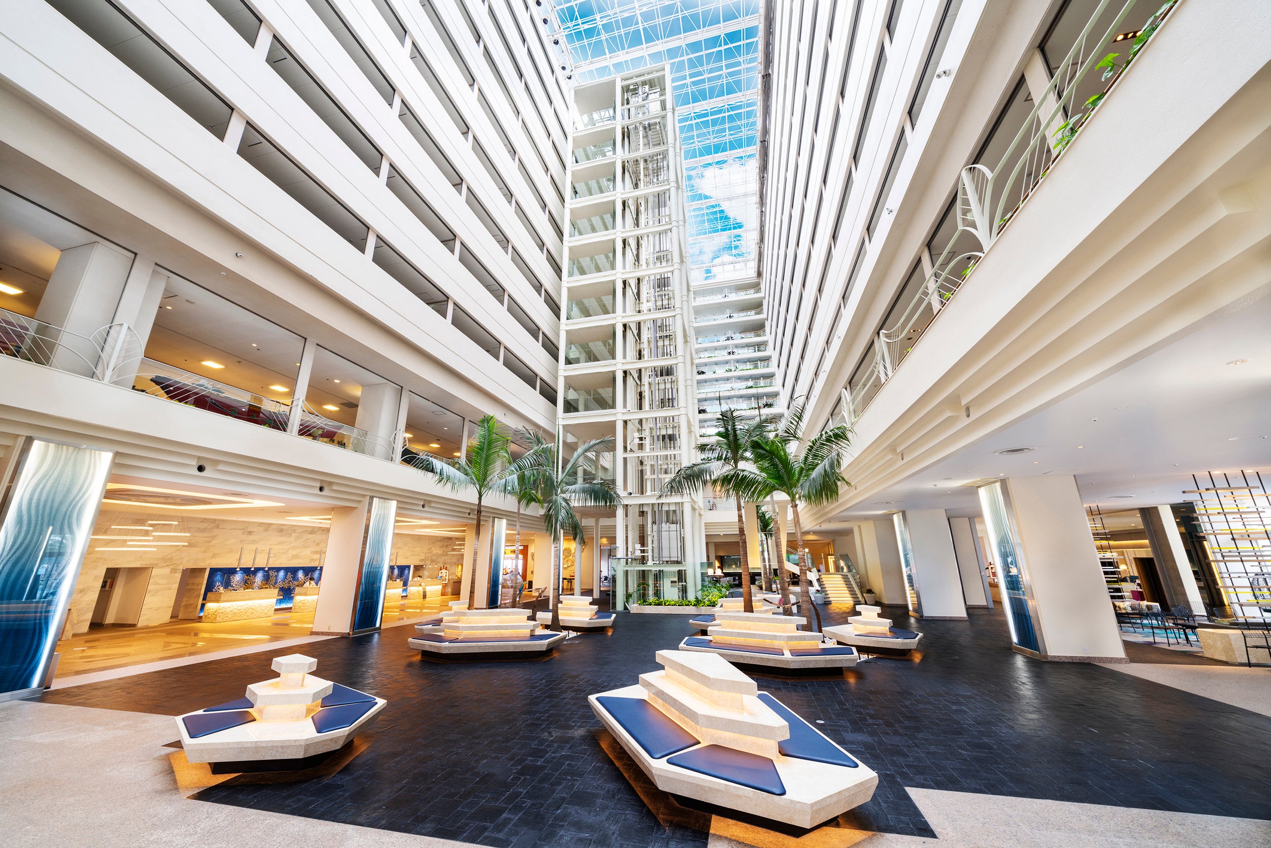 サンセットBBQや琉球炭火焼、寿司、日本料理、フレンチ、鉄板焼など個性的な9ヶ所のレストラン&バー、山田温泉、タラソテラピーサロン、THE NORTH FACE/HELLY HANSENほか5つのショップが揃い、子どもから大人まで上質なリゾートステイをご堪能いただけます。